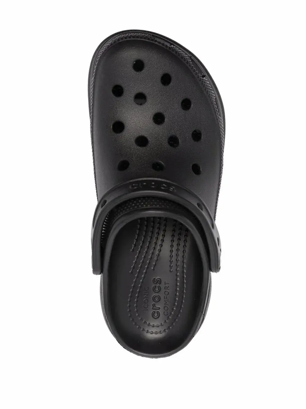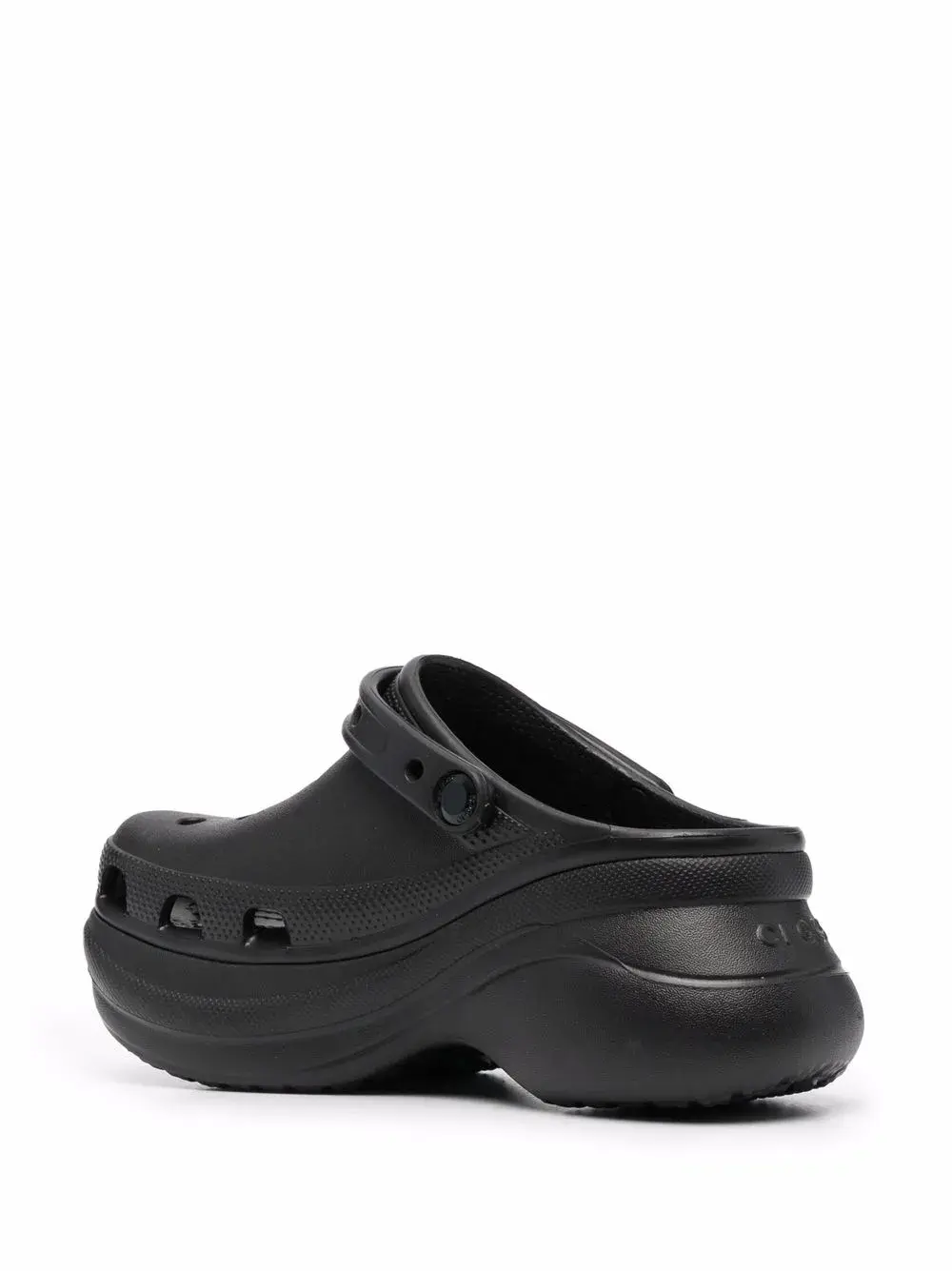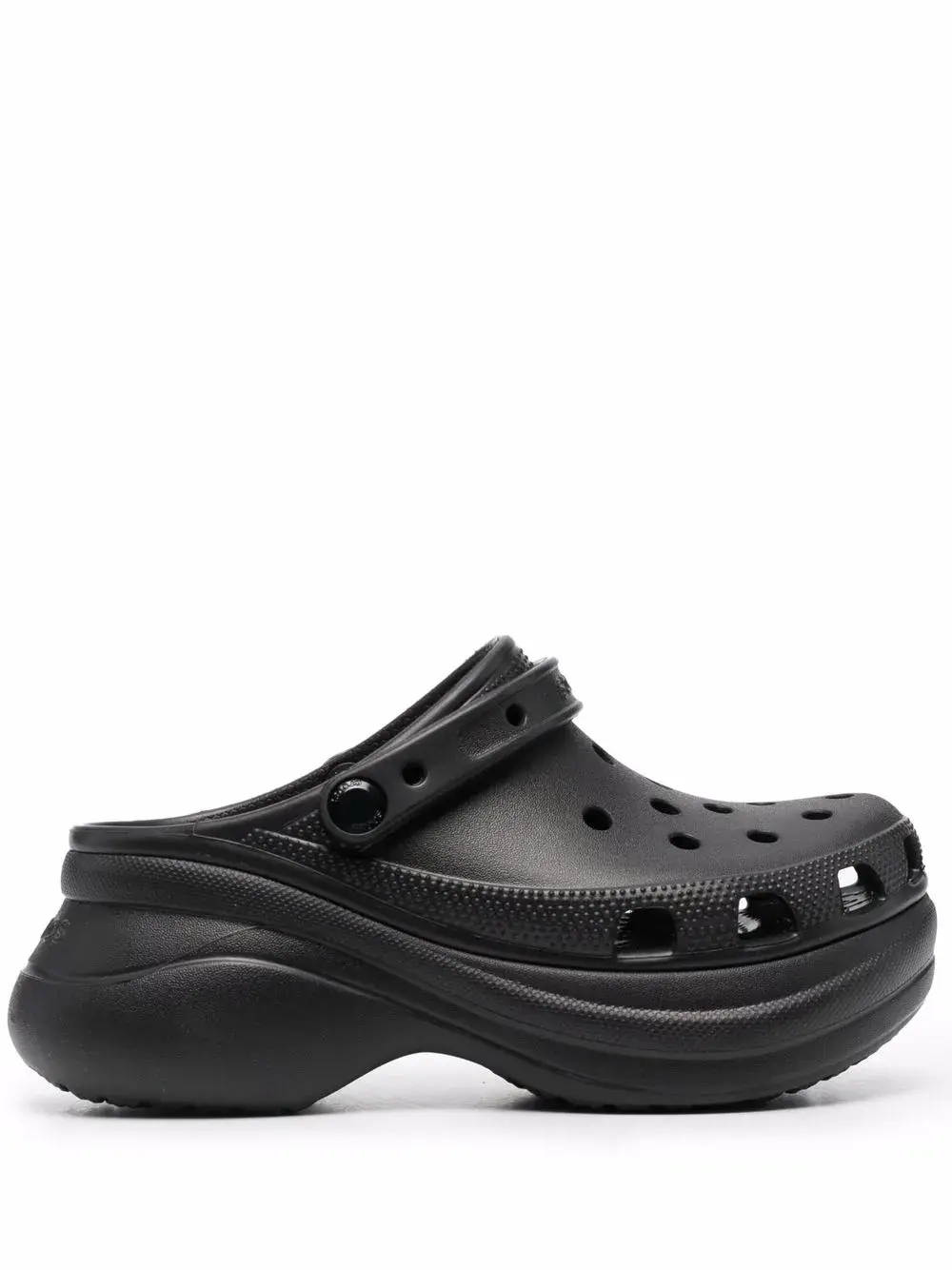 Ребристая резиновая подошва, ремешок на пятке, закругленный носок и перфорация. Цвет: черный.