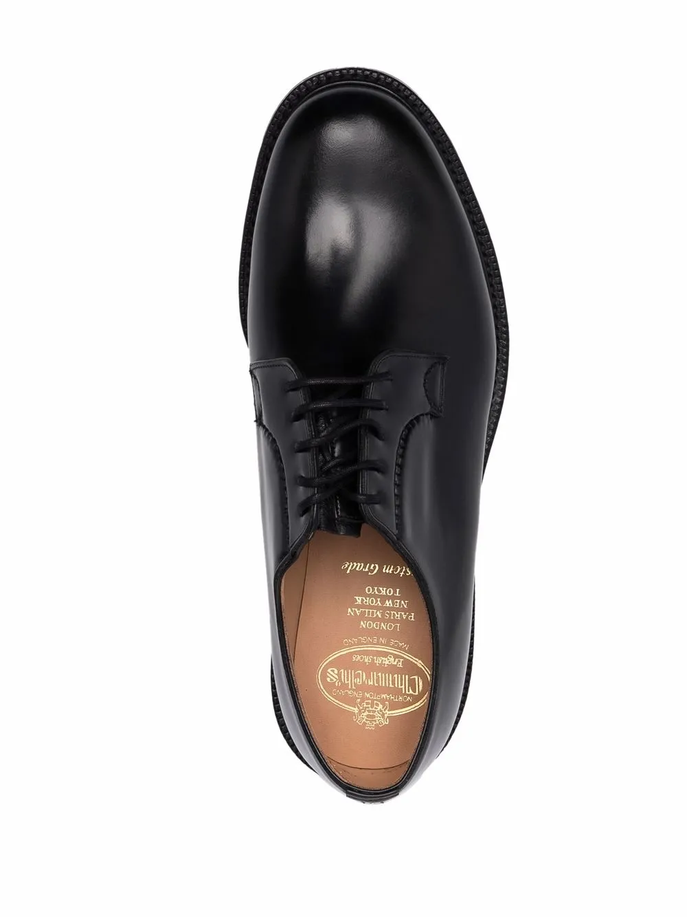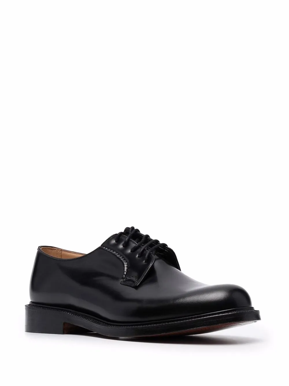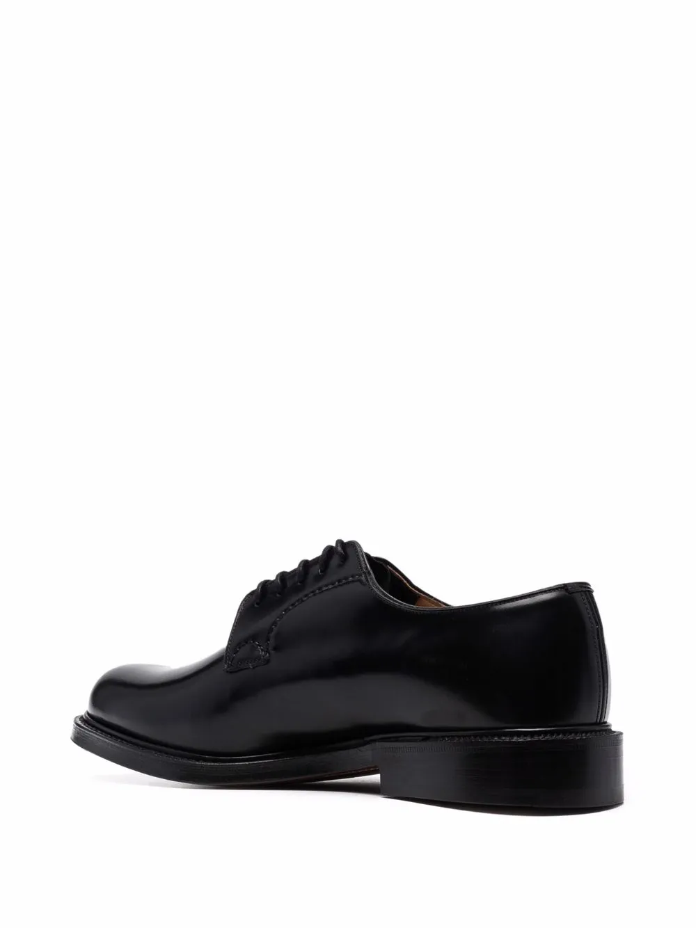 Глянцевое покрытие, миндалевидный носок, шнуровка спереди и кожаная стелька с логотипом. Цвет: черный.