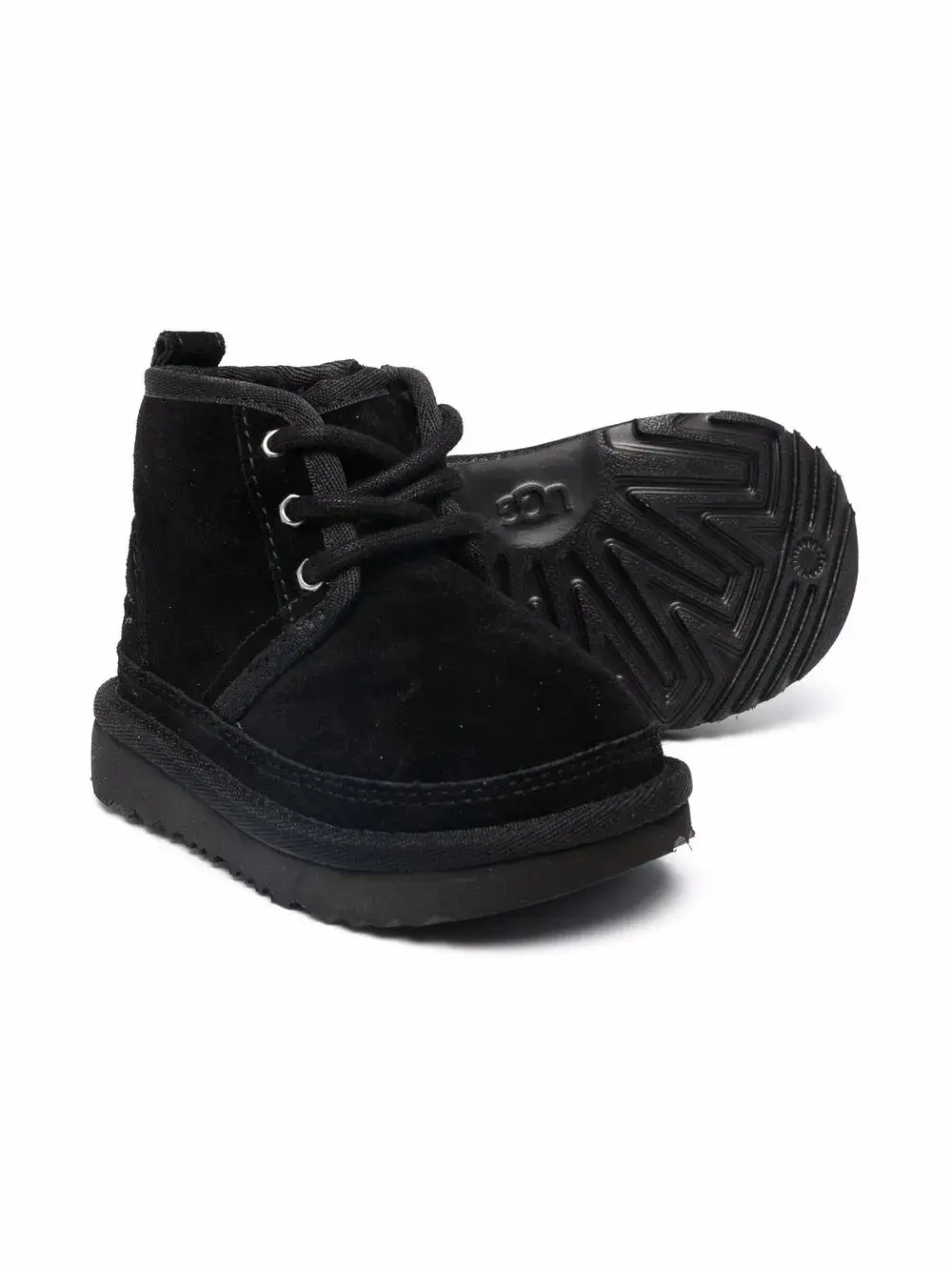 Тональная строчка, закругленный носок, шнуровка спереди, застежка на молнии сбоку, рифленая резиновая подошва и петля для подтягивания сзади. Цвет: черный.