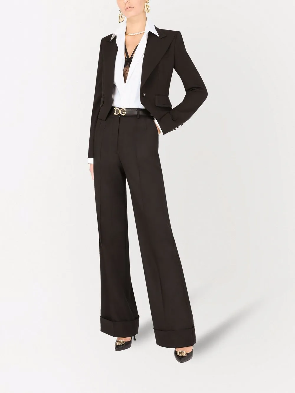 Шерстяные брюки палаццо DOLCE & GABBANA, черный