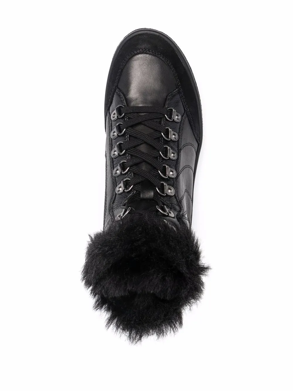 Меховая подкладка, отделка из меха, закругленный носок, шнуровка спереди и плоская резиновая подошва. Цвет: черный.