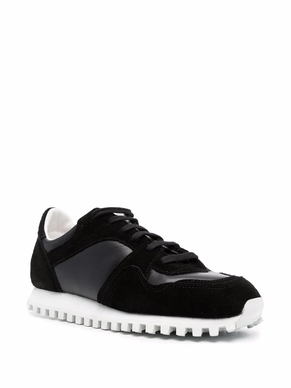 Нашивка с логотипом на язычке, шнуровка спереди, закругленный носок и плоская подошва. Цвет: черный.
