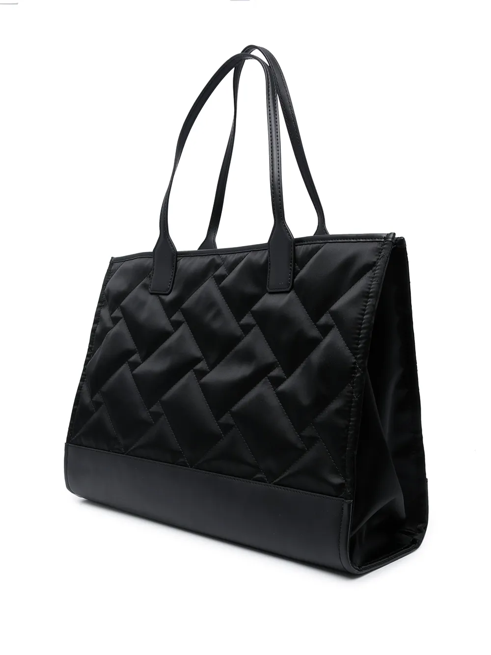 Стеганая модель, подвеска в форме головы орла, верхние ручки, логотип спереди и внутренний карман на молнии. Цвет: черный.