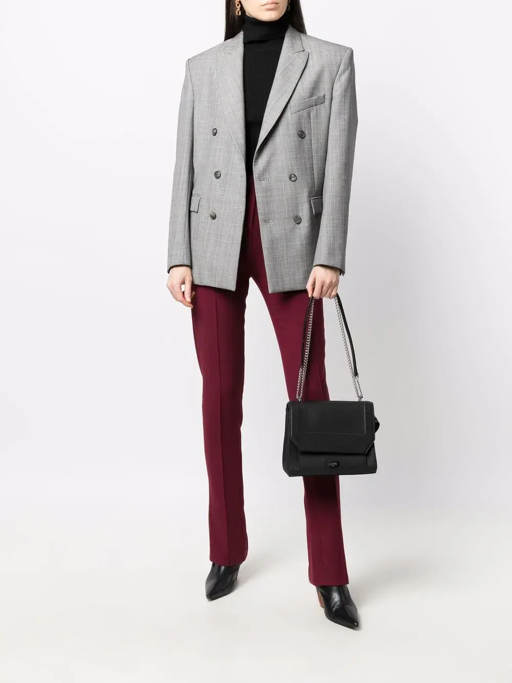 Закругленная верхняя ручка, регулируемый ремень из кожи и металла на плечо, откидной верх с застежкой на кнопки и внутренний карман на молнии. Цвет: черный.