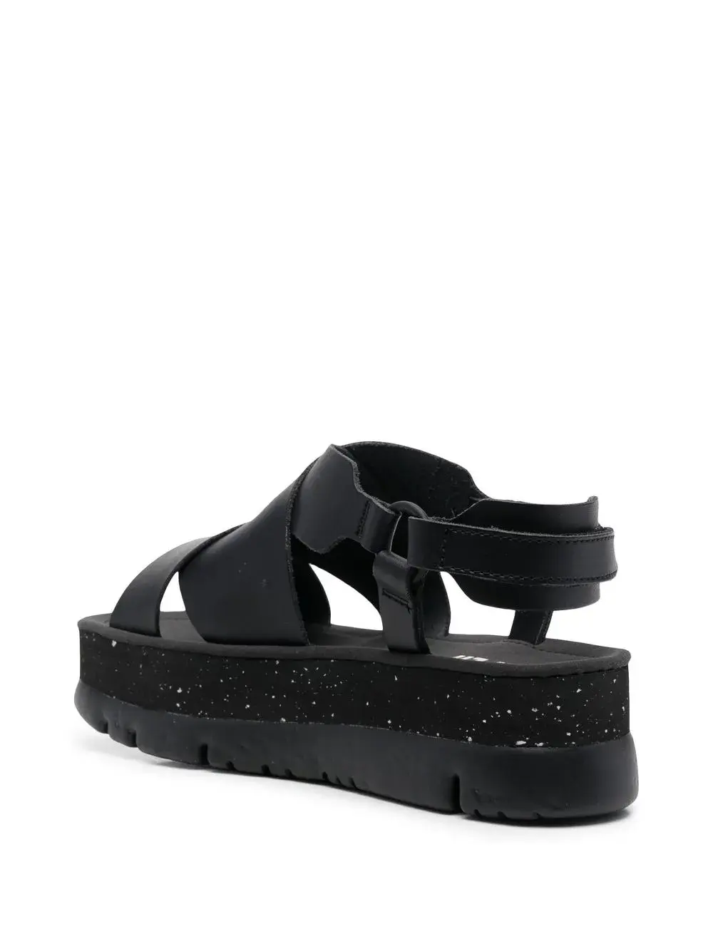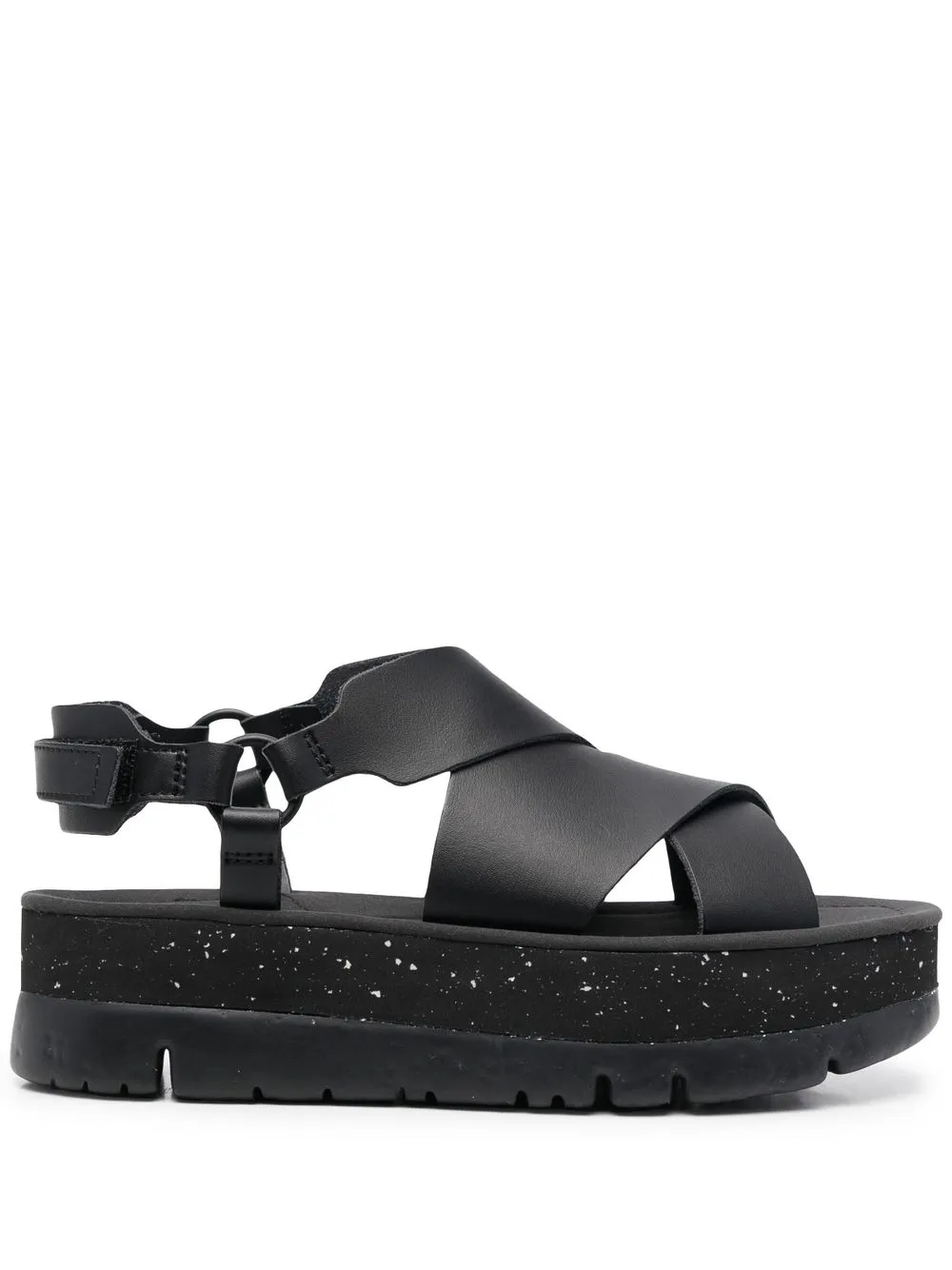 Подробнее о товаре: Застежка на липучке сзади, перекрестные ремешки, открытый носок, промежуточная подошва из этиленвинилацетата (EVA) и подошва на платформе. Цвет: черный. Кожа в составе этого товара сделана на фабрике, сертифицированной организациями Leather Working Group (LWG) или ICEC. Это гарантирует, что производитель минимизировал негативное влияние материала на окружающую среду. Узнать больше о том, какие товары получают отметку «Ответственный выбор», можно из материала «Как мы оцениваем экологичность и этичность».