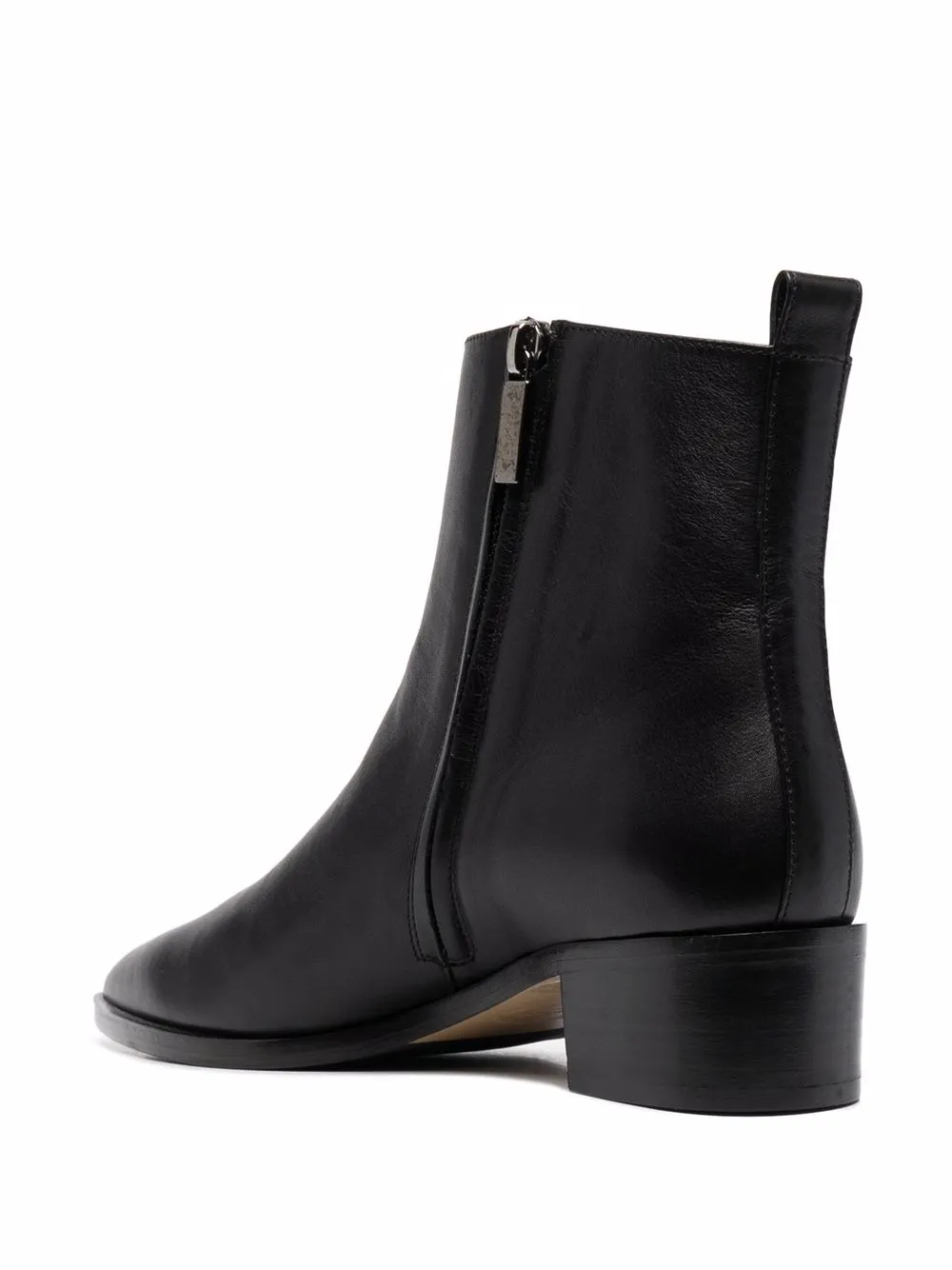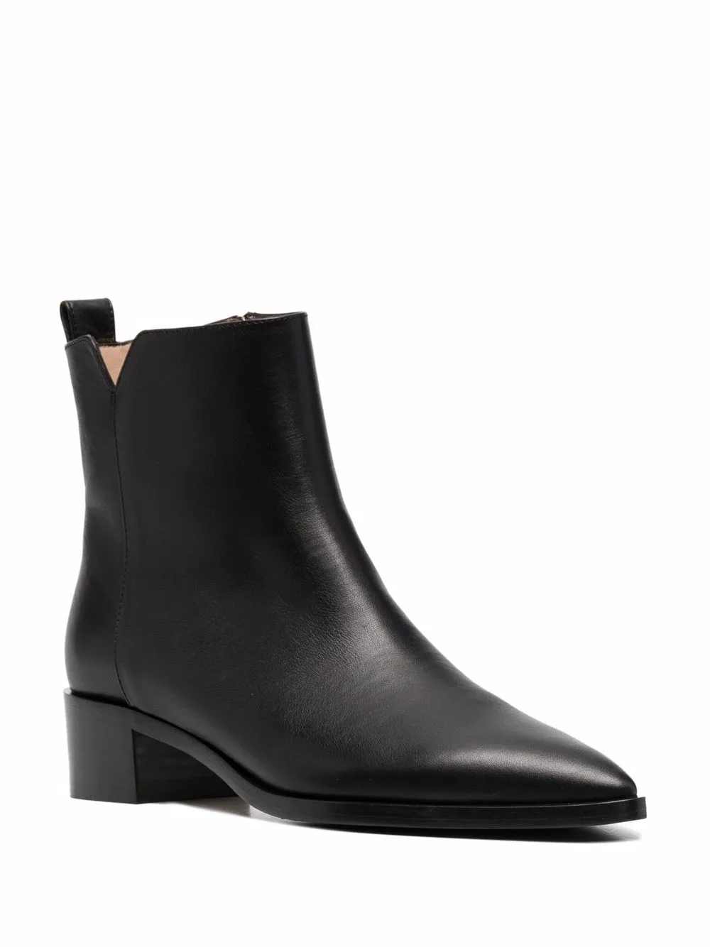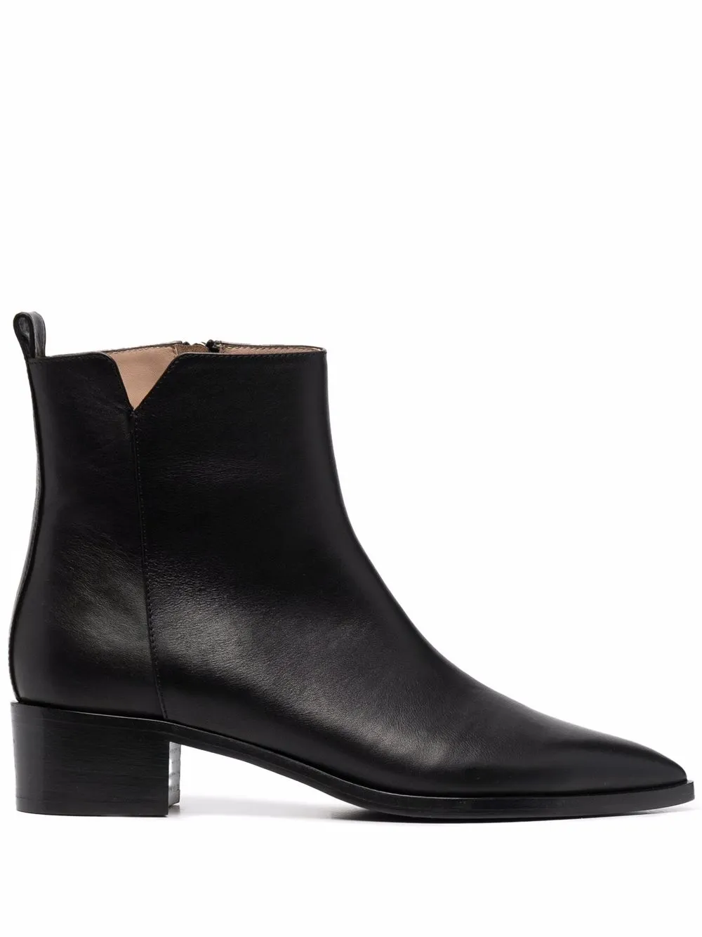 Застежка на молнии сбоку, петля для подтягивания сзади, длина по щиколотку, закругленный носок и низкий каблук. Цвет: черный.