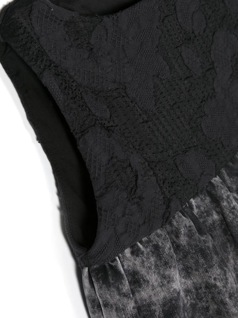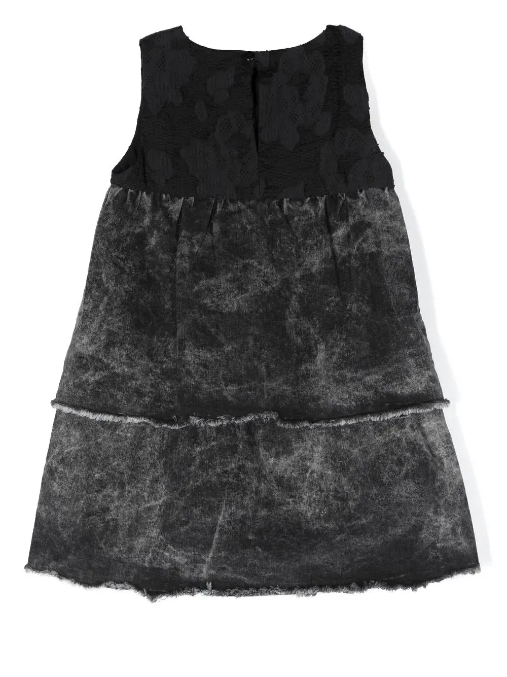 Черный, хлопок, эффект кислотной стирки, ярусная юбка, необработанные края, вставки из цветочного кружева, круглый вырез, без рукавов и юбка А-образного силуэта. . Узнать больше о том, какие товары получают отметку «Ответственный выбор», можно из материала «Как мы оцениваем экологичность и этичность».