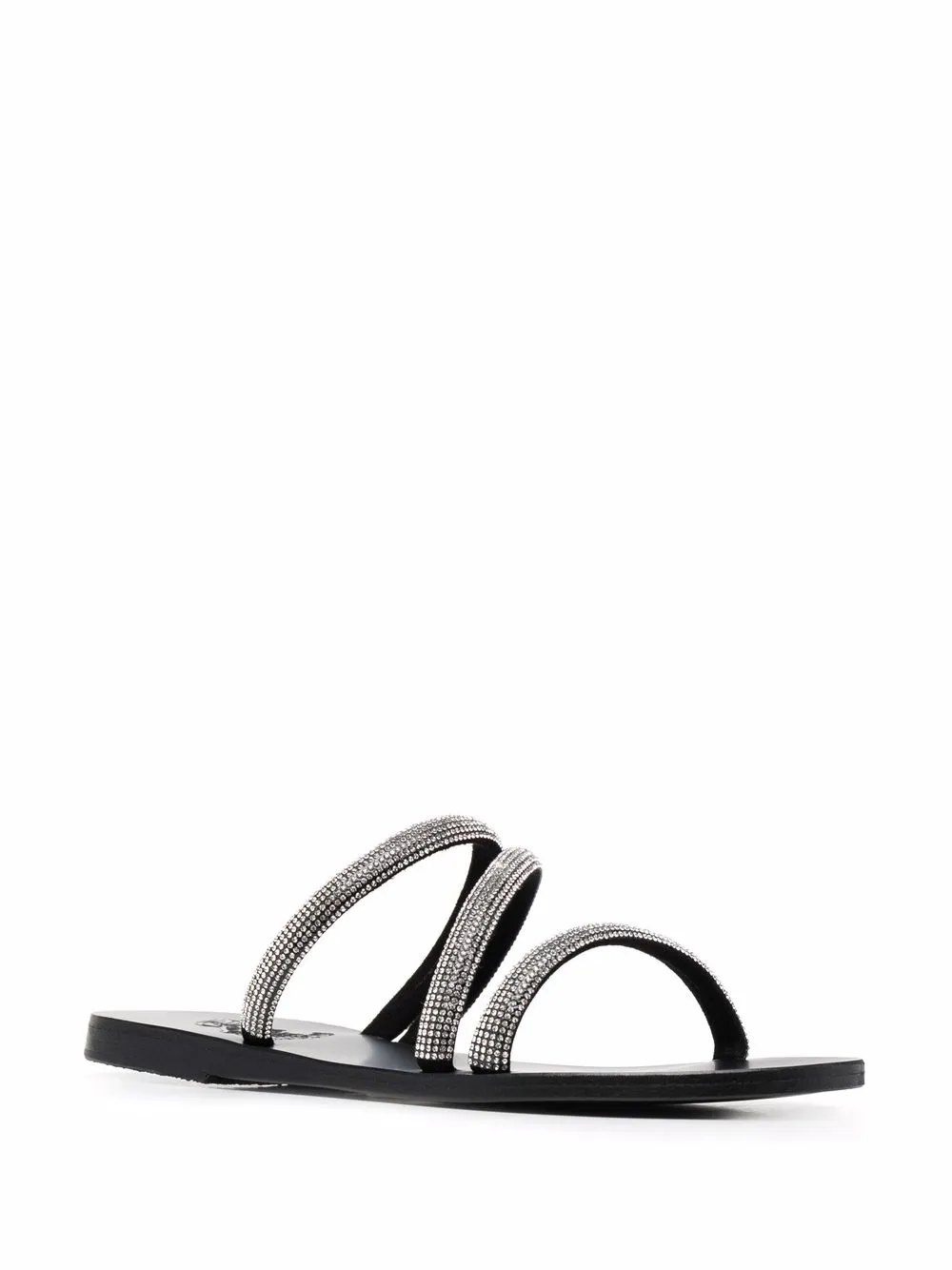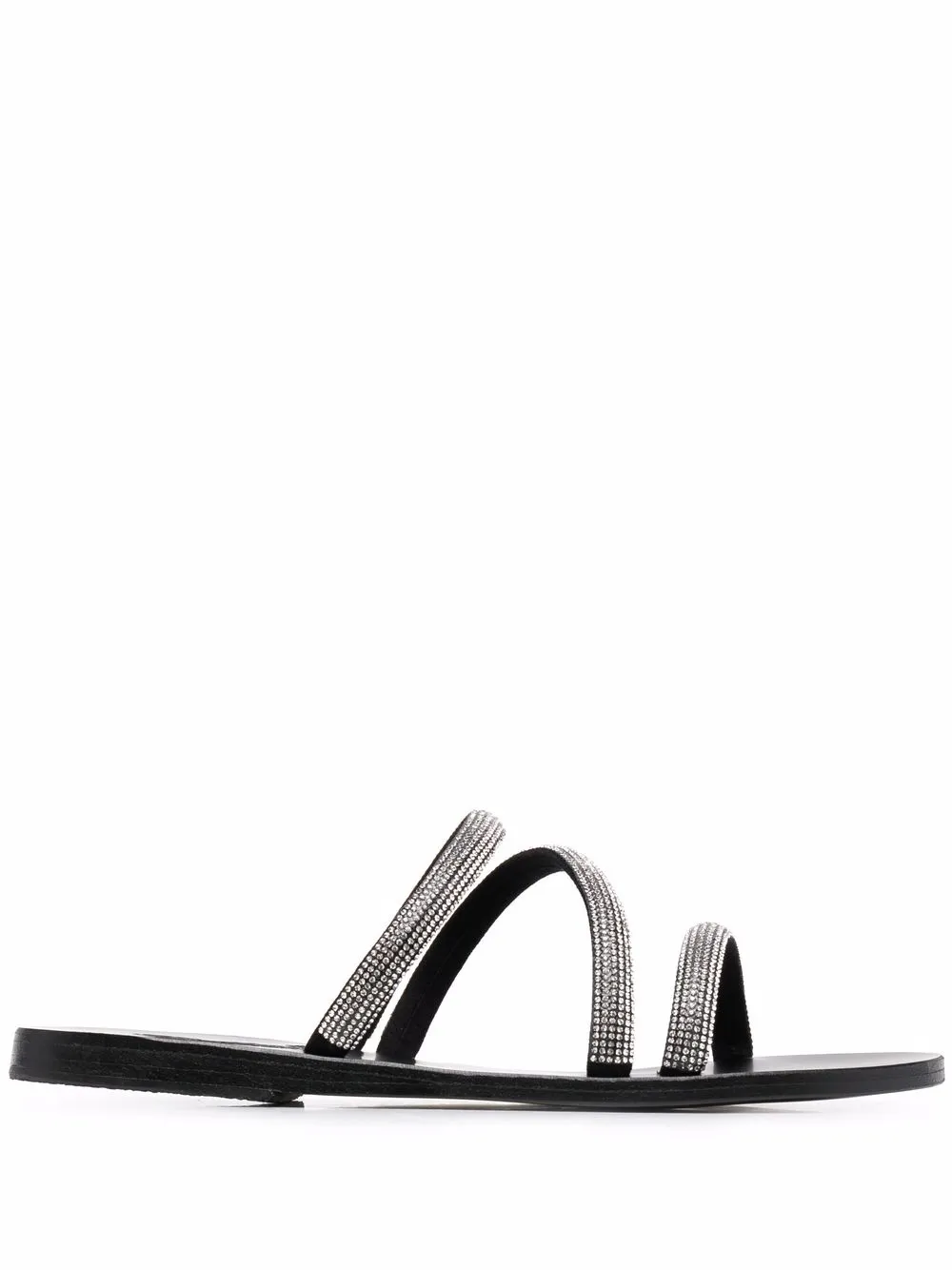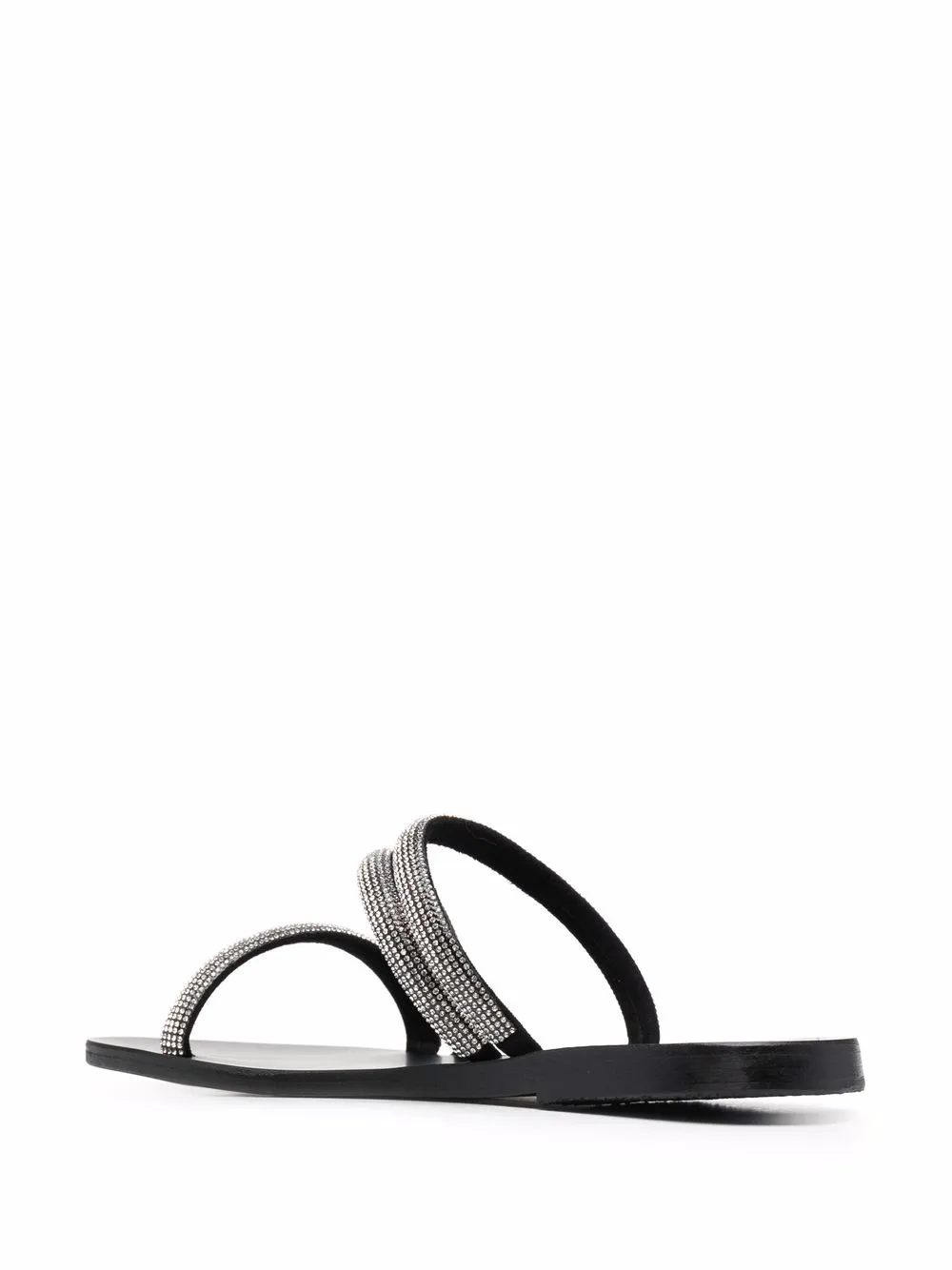 Декор из кристаллов, модель без застежки, тонкие ремешки, открытый носок и плоская подошва. Цвет: черный. Этот бренд получил хорошую оценку, потому что следит за соблюдением достойных условий труда на всех этапах цепочки поставок..