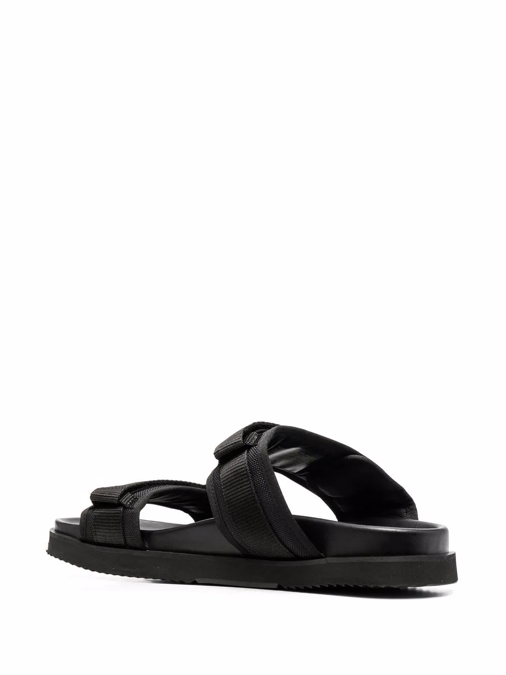 Металлический логотип, застежка на липучке спереди, открытый носок, плоская резиновая подошва и стелька с логотипом. Цвет: черный.