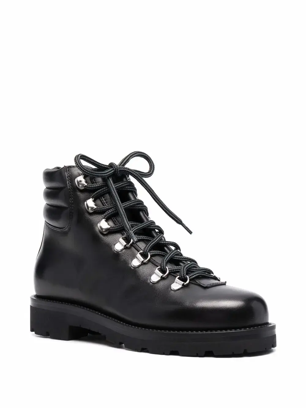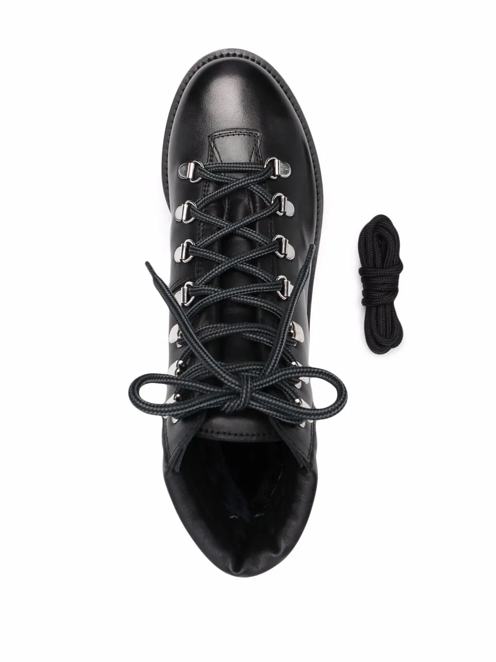 Подкладка из овечьей шерсти, шнуровка спереди, сменные шнурки, закругленный носок, уплотненная щиколотка, стелька с логотипом и массивная резиновая подошва. Цвет: черный.