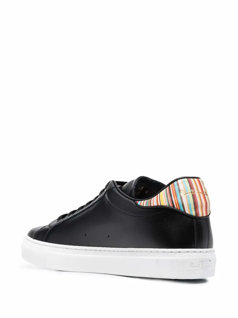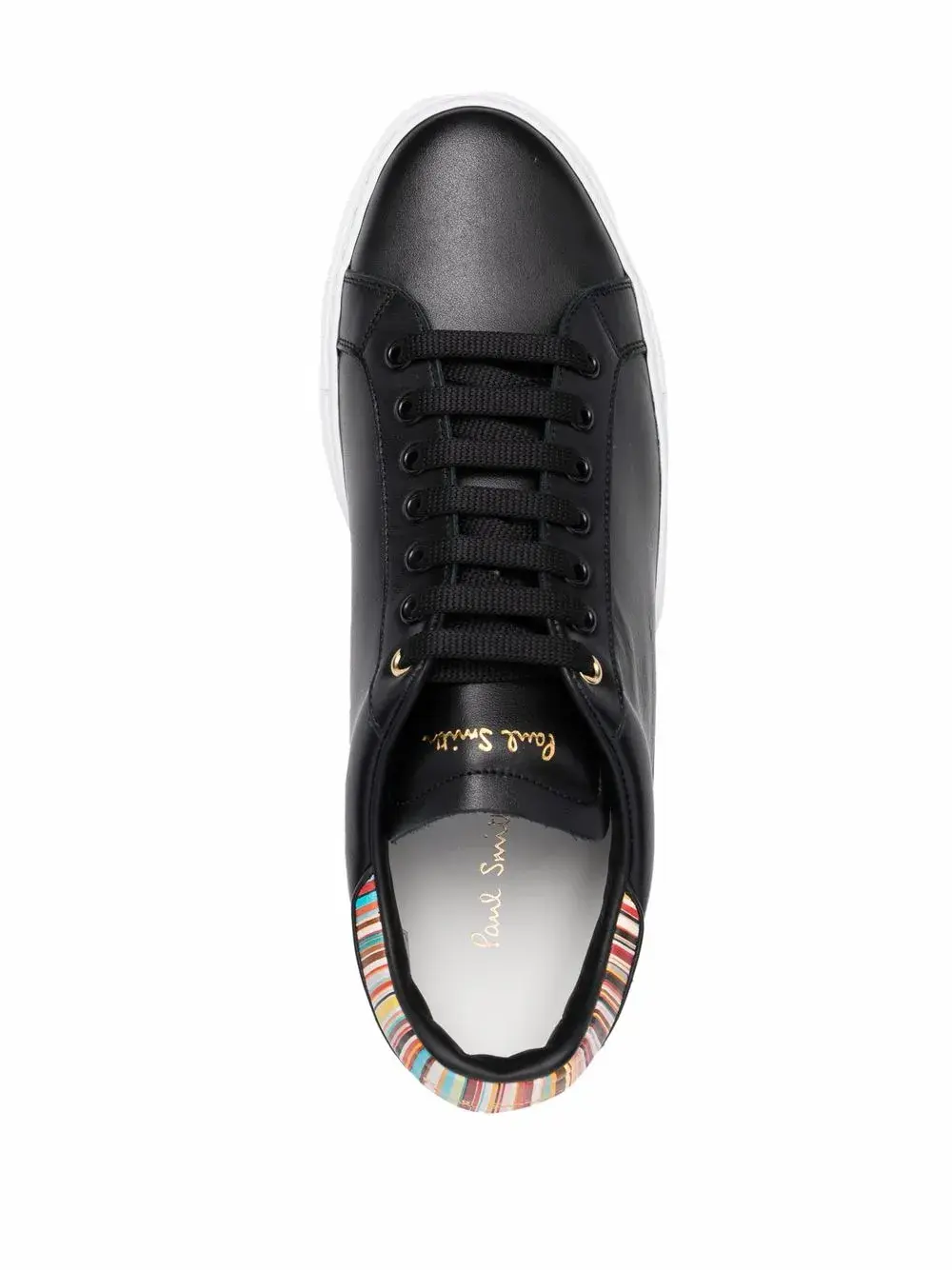 Полоски, тисненый логотип на язычке, закругленный носок, шнуровка спереди, стелька с логотипом и плоская резиновая подошва. Цвет: черный.