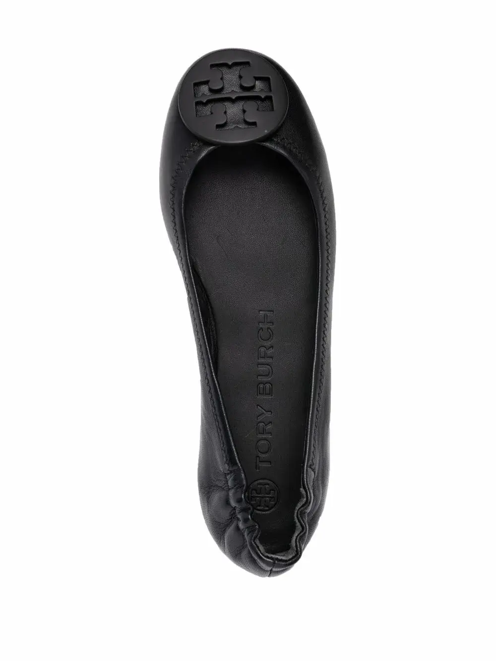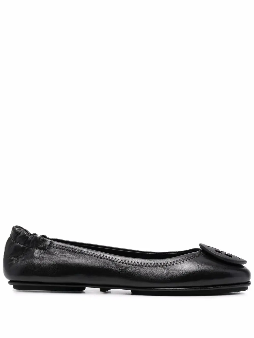 Металлический логотип, закругленный носок, вставка из эластичной ленты и плоская резиновая подошва. Цвет: черный.