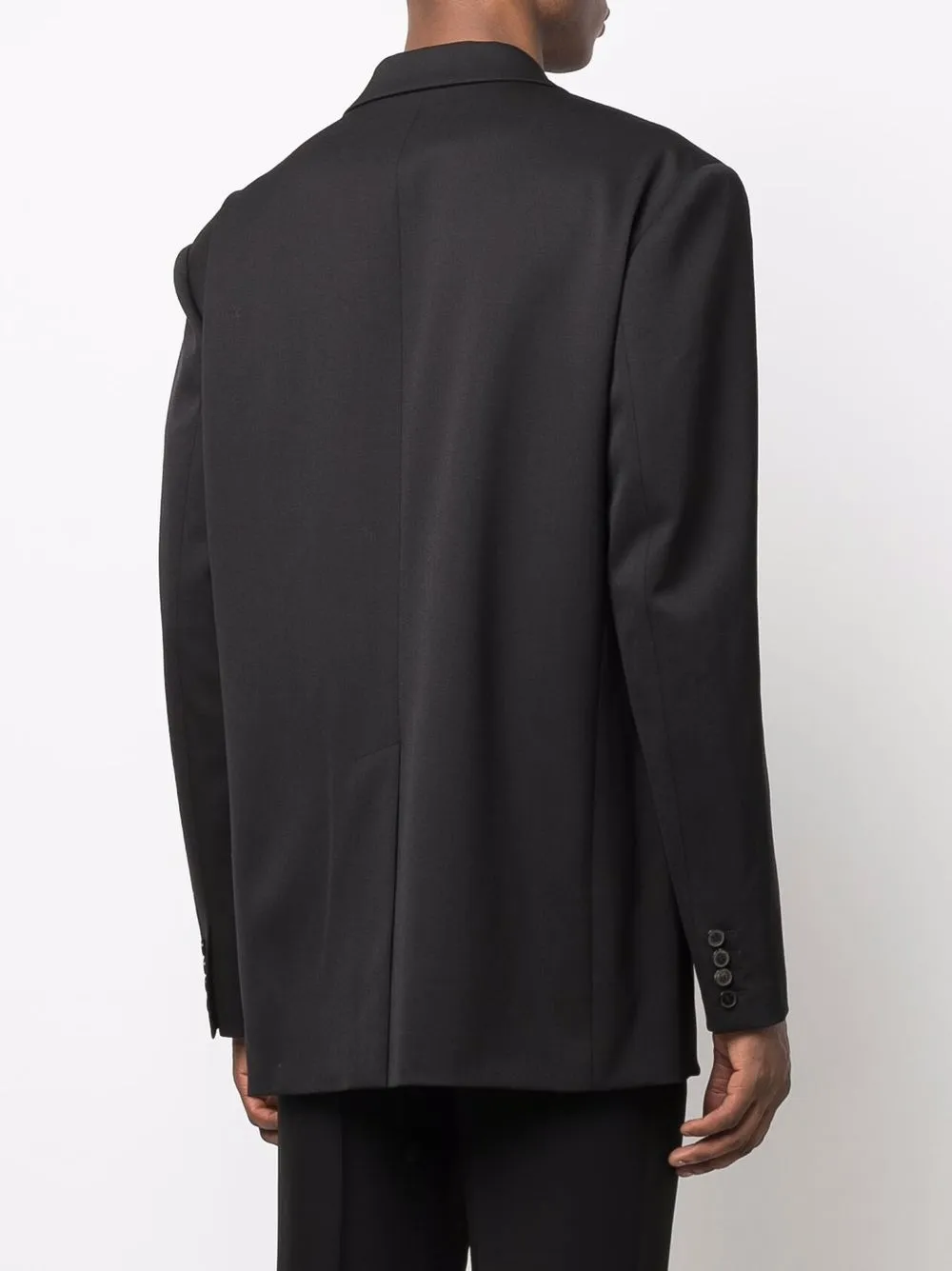 Коллекция Valentino Ready To Wear, заостренные лацканы, застежка на пуговицах спереди, длинные рукава, манжеты на пуговицах, прорезной карман на груди, два кармана с клапанами по бокам и шлица по центру сзади. Цвет: черный.