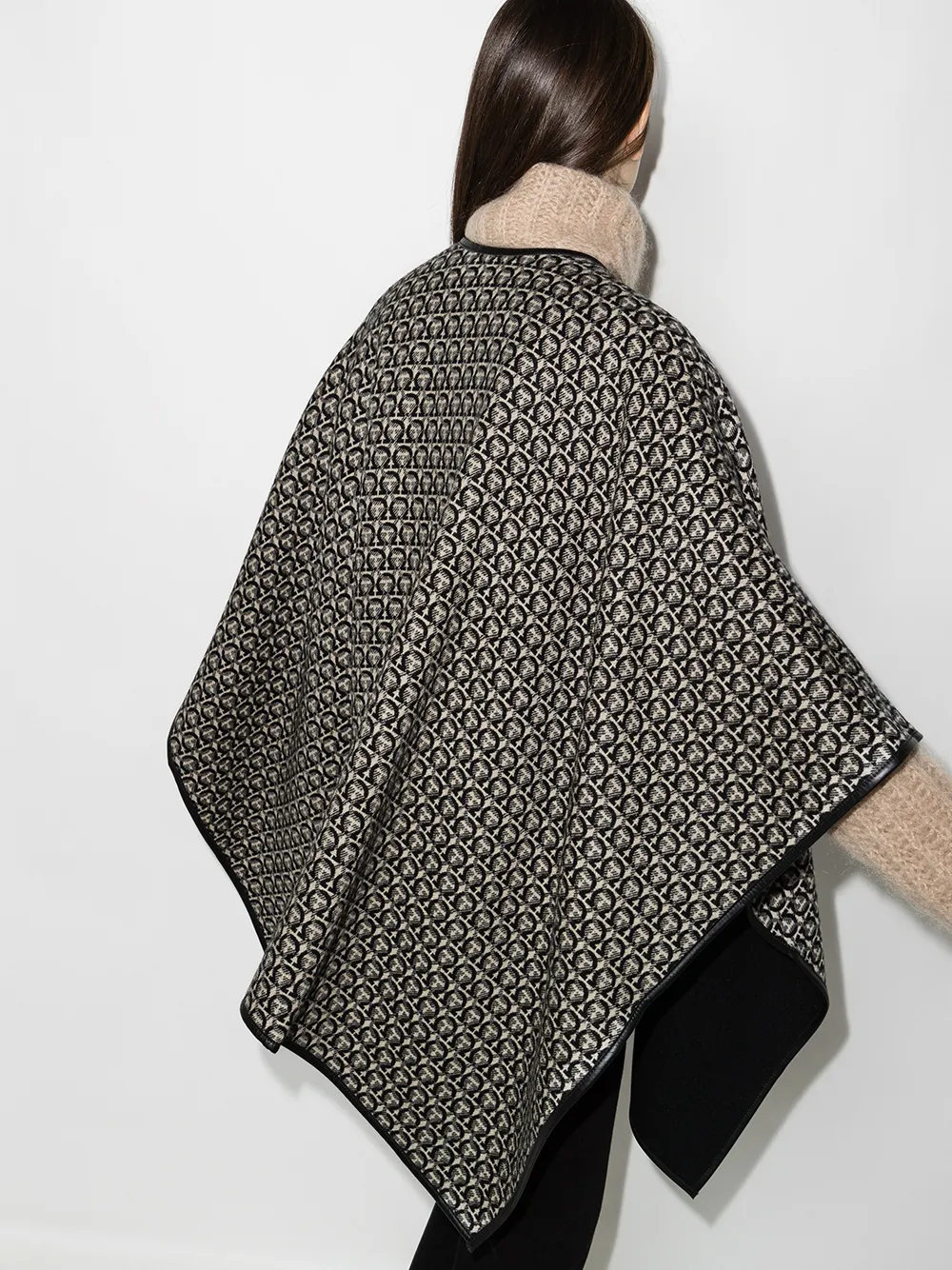 Шерстяной кейп с декором Gancini Ferragamo, черный