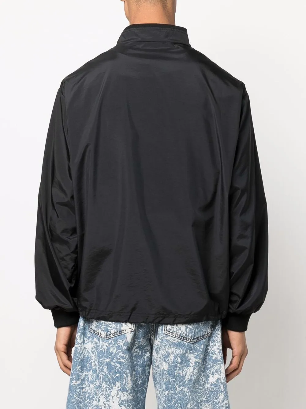 Вышитый логотип на груди, нашивка, воротник-стойка, короткая застежка на молнии спереди, длинные рукава, манжеты в рубчик и подол с кулиской. Цвет: черный.