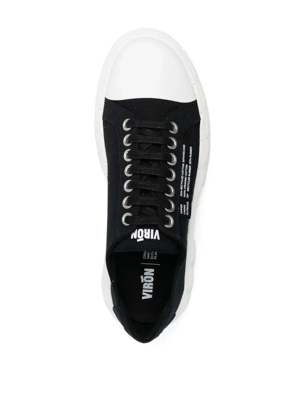 Язычок с логотипом, принт с надписью сбоку, контрастный носок, закругленный носок, шнуровка спереди, стелька с логотипом и плоская резиновая подошва. Цвет: черный.