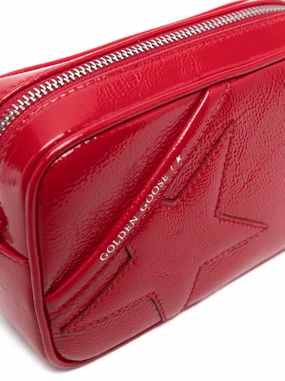 Нашивка в форме звезды, лакированное покрытие, нашивка с логотипом спереди, застежка на молнии сверху, ремешок-цепочка на плечо, основное отделение и нашивка с логотипом внутри. Цвет: красный.