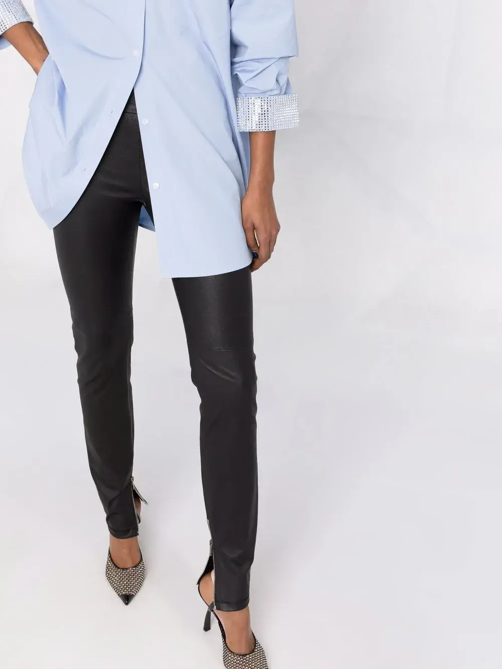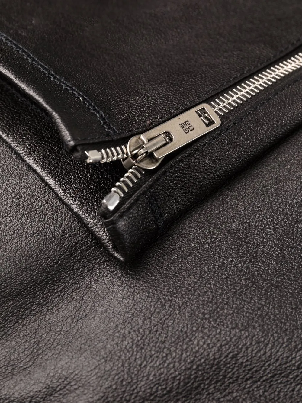 Однотонная расцветка, глянцевая фактура и детали с молниями. Цвет: черный.
