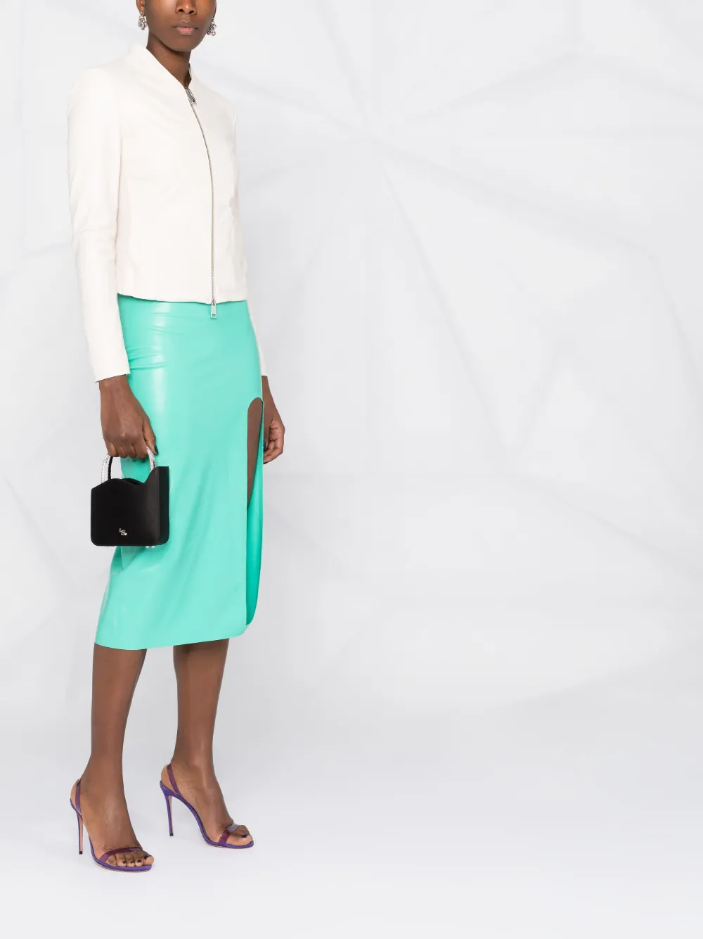 Сатиновый финиш, вырезные детали, серебристый металлический логотип, съемный ремень на плечо, магнитная застежка и основное отделение. Цвет: черный.