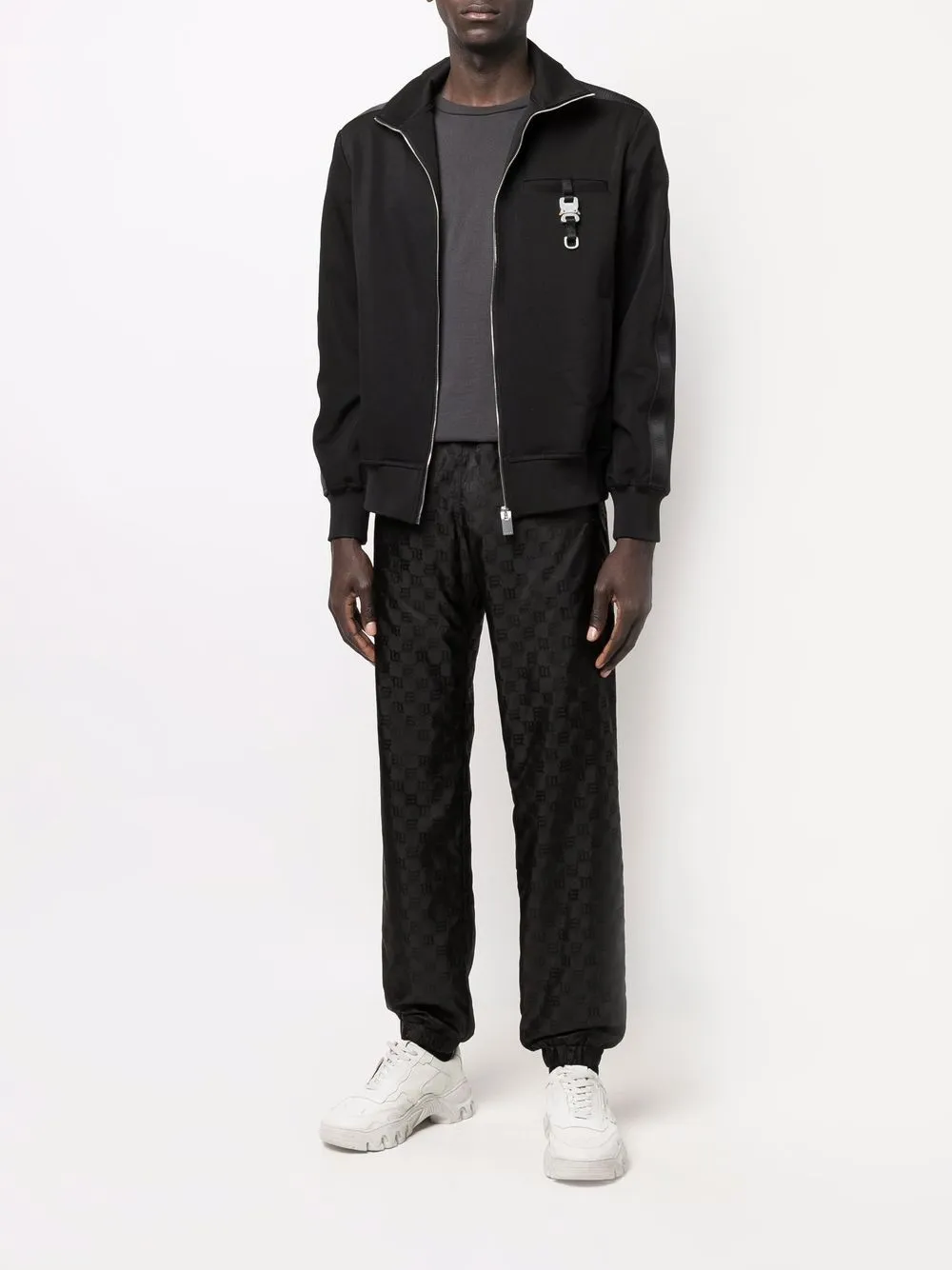 Жаккард с монограммой, эластичный пояс, зауженный крой и эластичные манжеты. Цвет: черный.