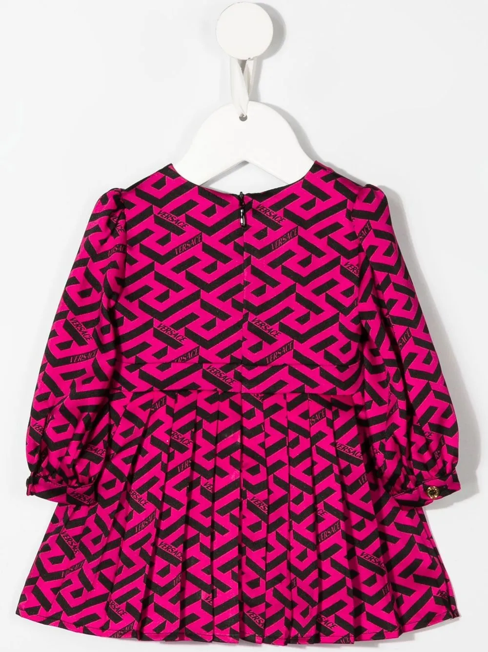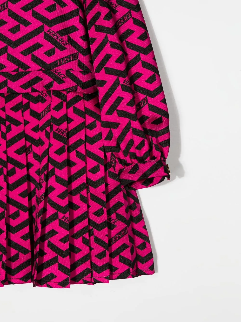Узор с изображением монограммы, складки, потайная застежка на молнии сзади, круглый вырез и длинные рукава. Ответственный выбор: Этот товар как минимум на 50% состоит из переработанных или повторно использованных материалов.