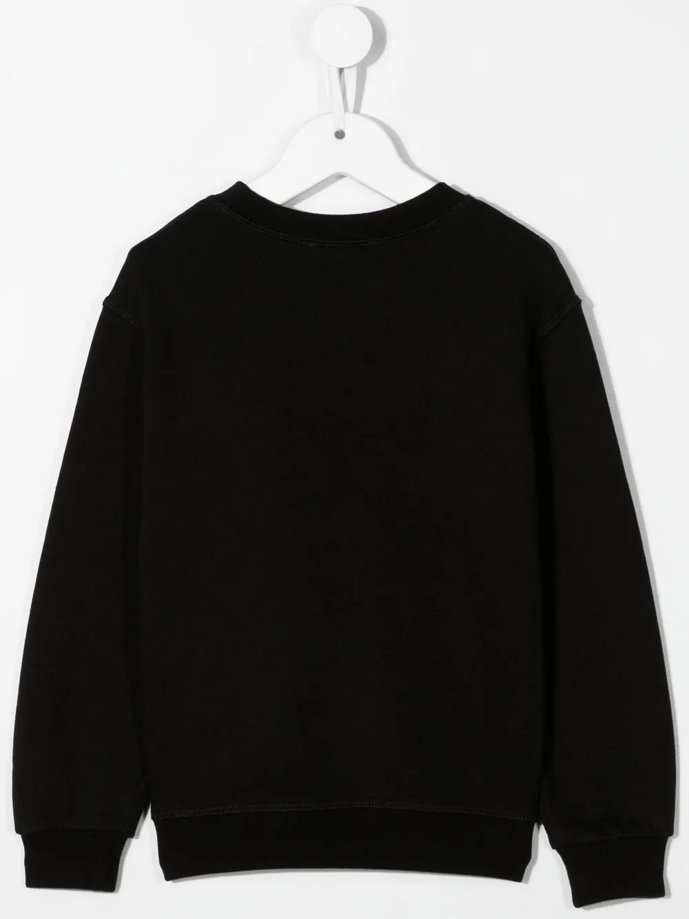 Черный, хлопок, круглый вырез, длинные рукава, прямой подол, манжеты в рубчик, подол в рубчик и логотип спереди.