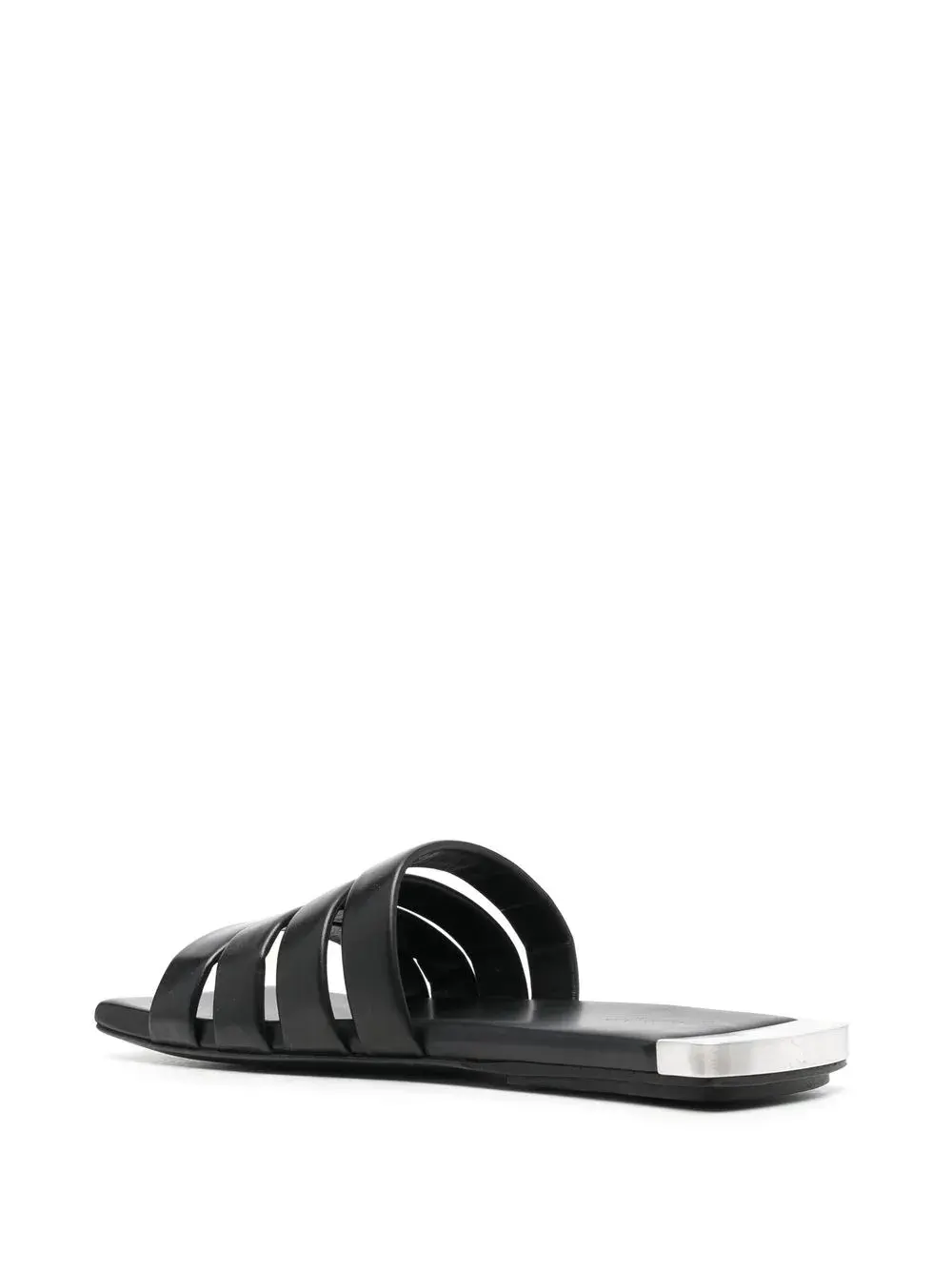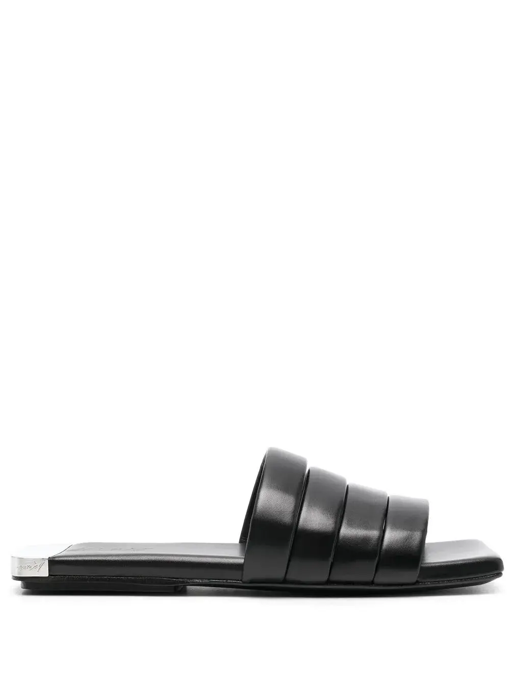 Черный, Кожа, квадратный носок, стелька с логотипом и плоская подошва.