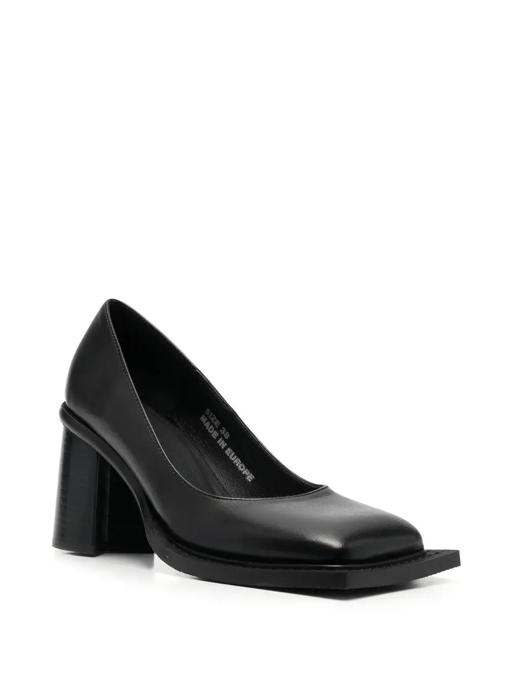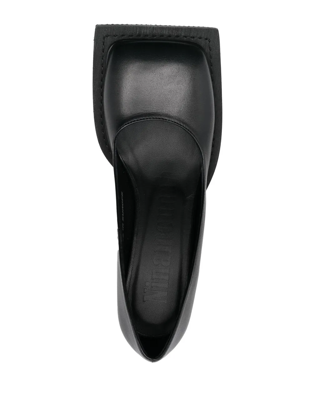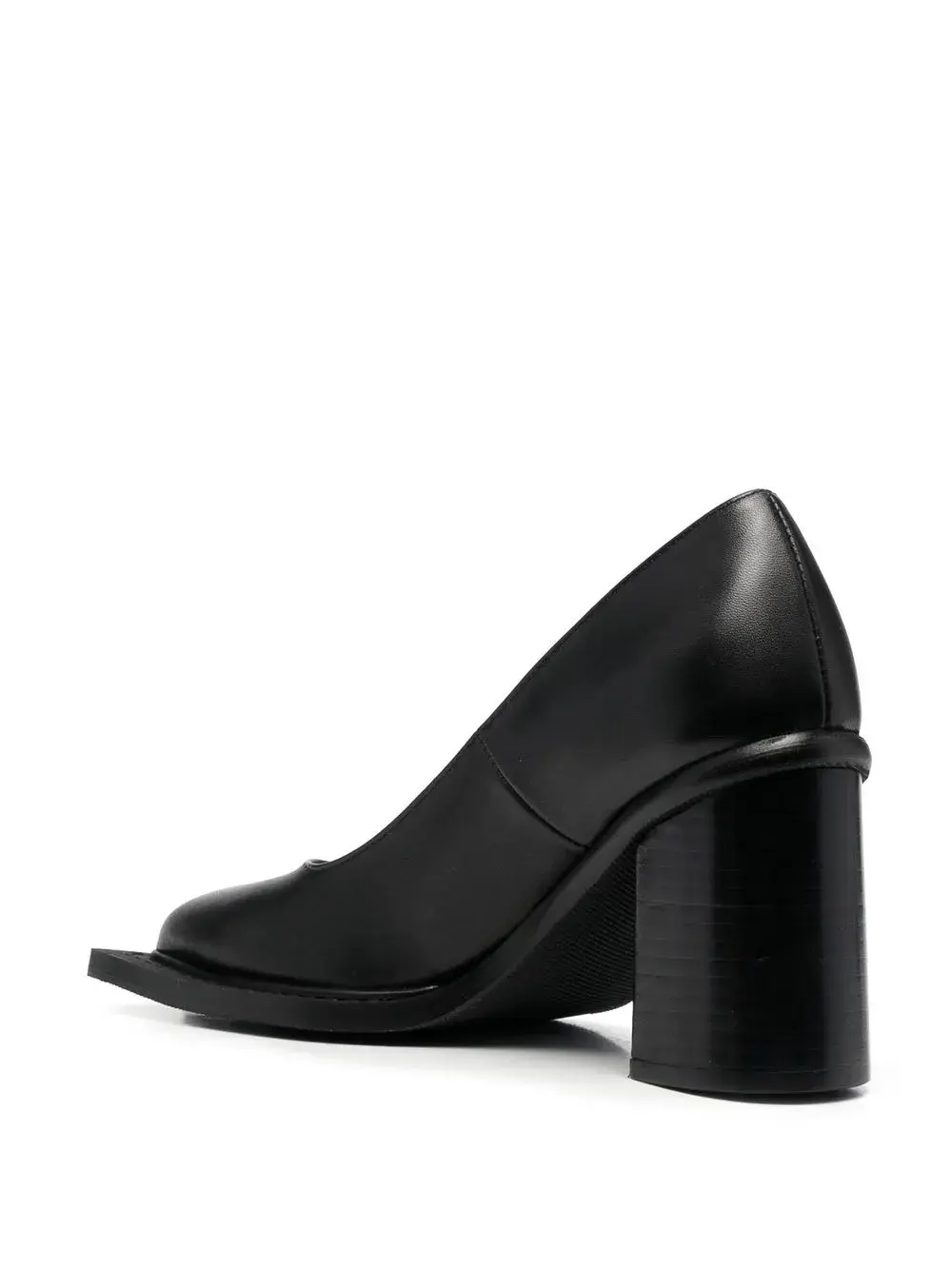 Черный, Кожа, квадратный носок, стелька с логотипом, высокий блочный каблук и модель без застежки.