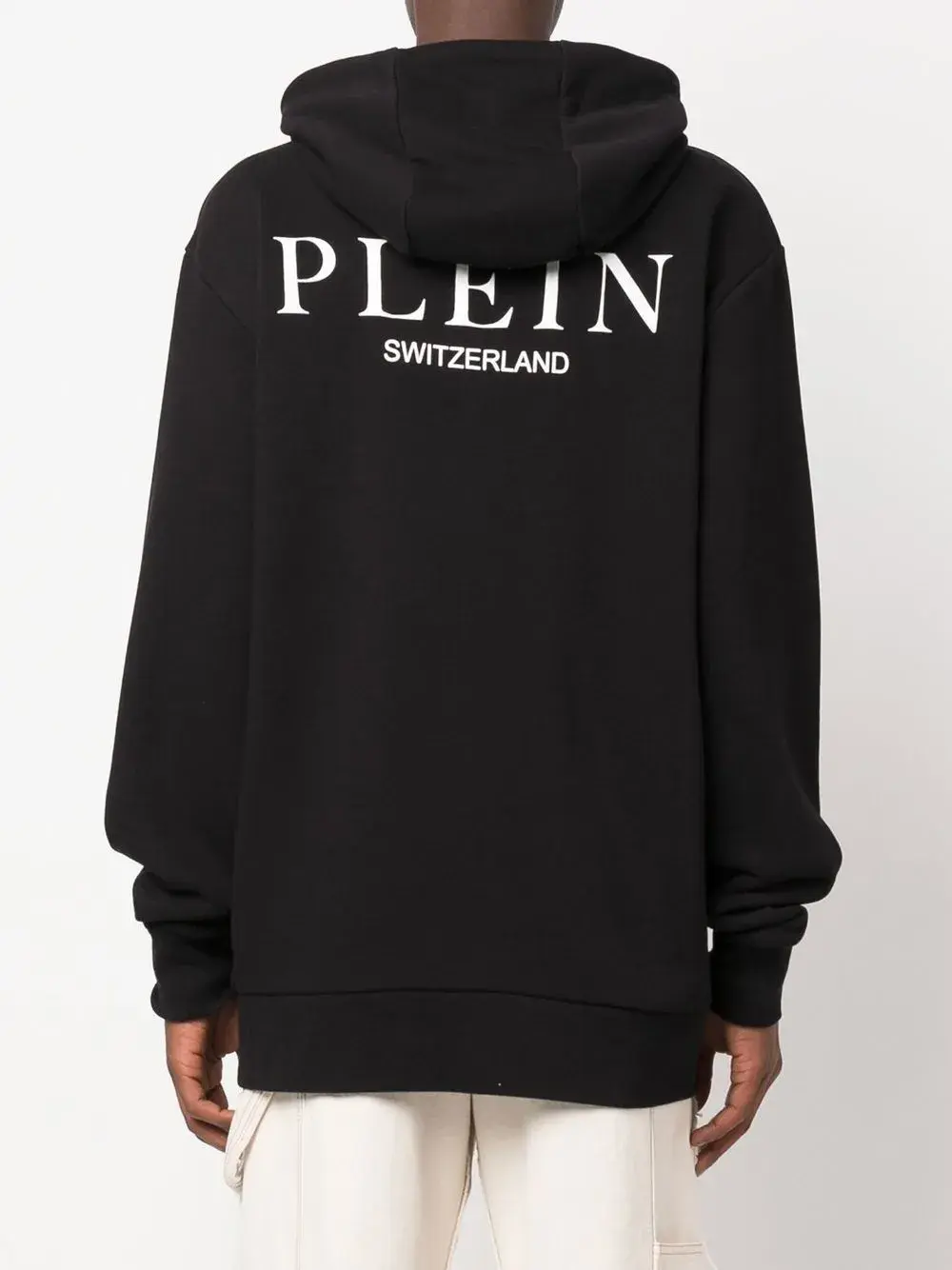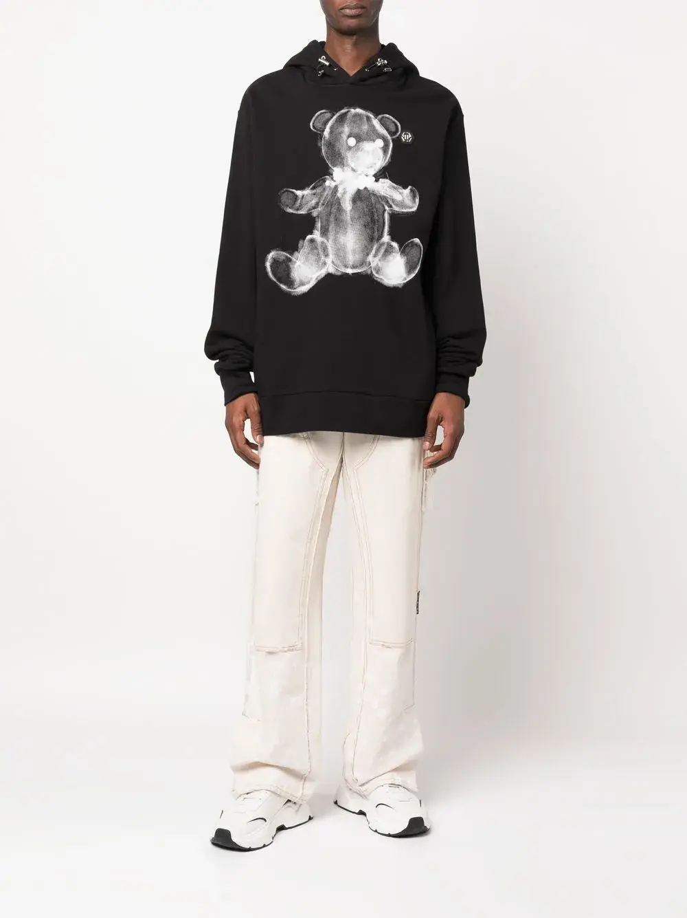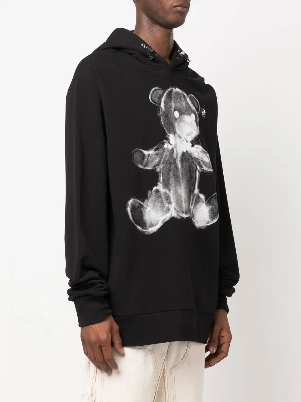 Черный/белый, хлопок, принт с изображением плюшевого медведя, принт с логотипом сзади, классический капюшон, длинные рукава и прямой подол.