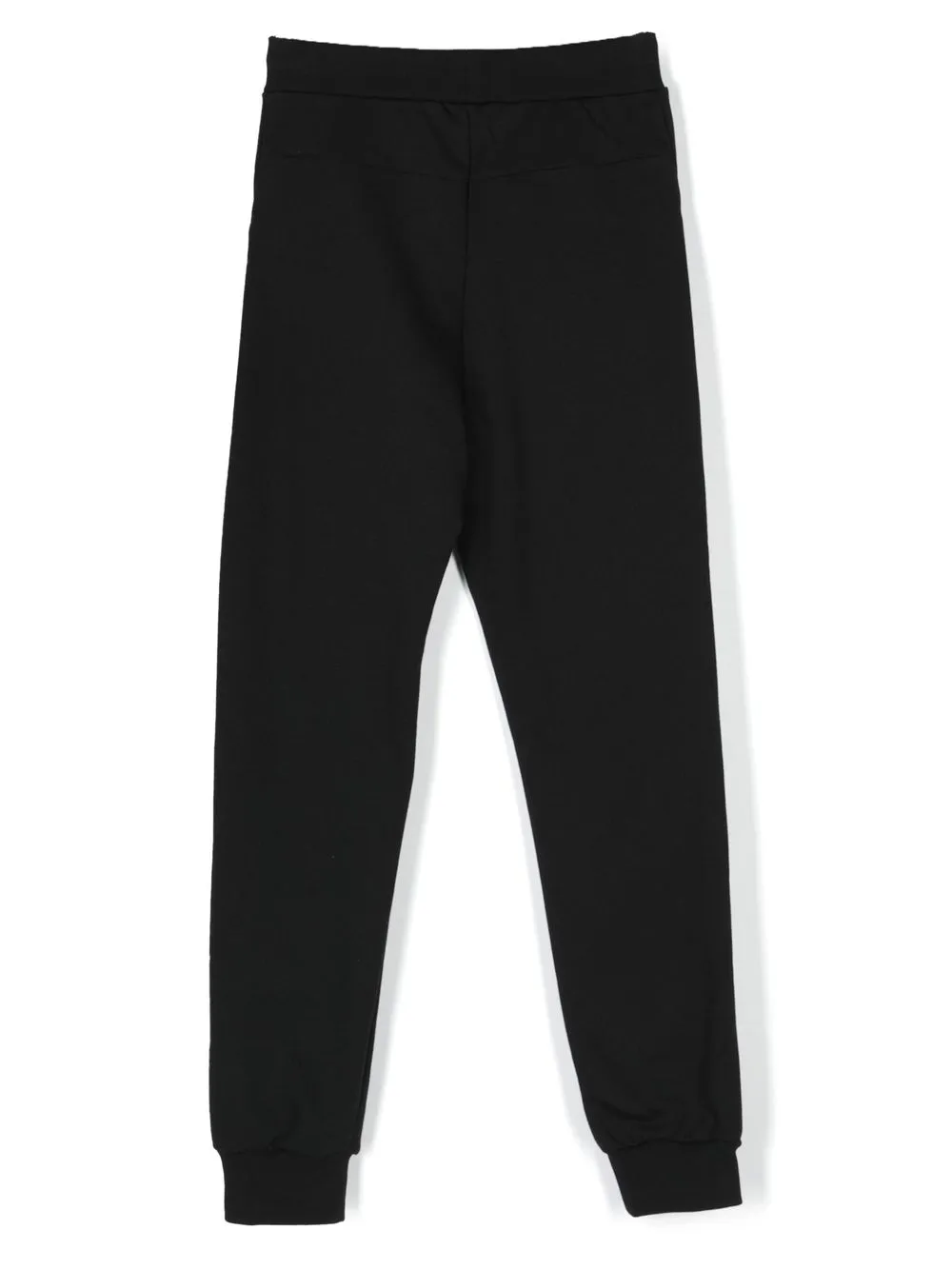 Черный, хлопок, эластичный пояс, отделка лентой с логотипом, два прорезных кармана по бокам и эластичные манжеты.
