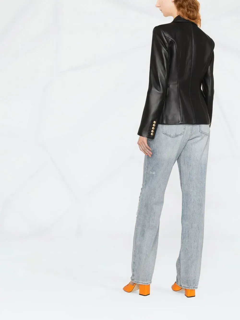 Двубортный кожаный блейзер BALMAIN, черный 360 595₽