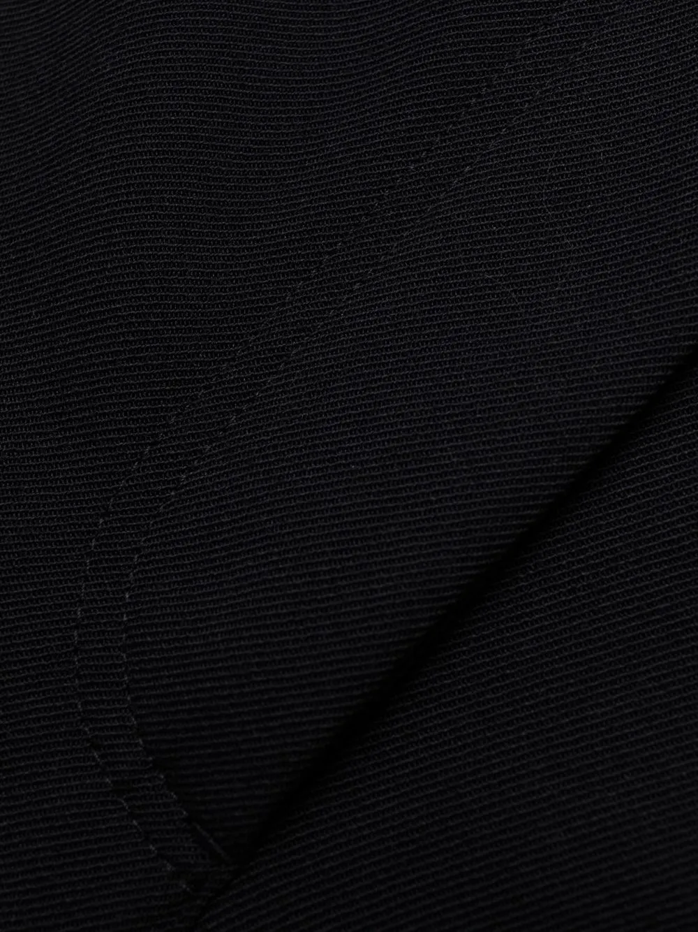Черный, смесь хлопка и шерсти, петли для ремня, потайная застежка спереди, пять карманов, крой bootcut и укороченная длина.