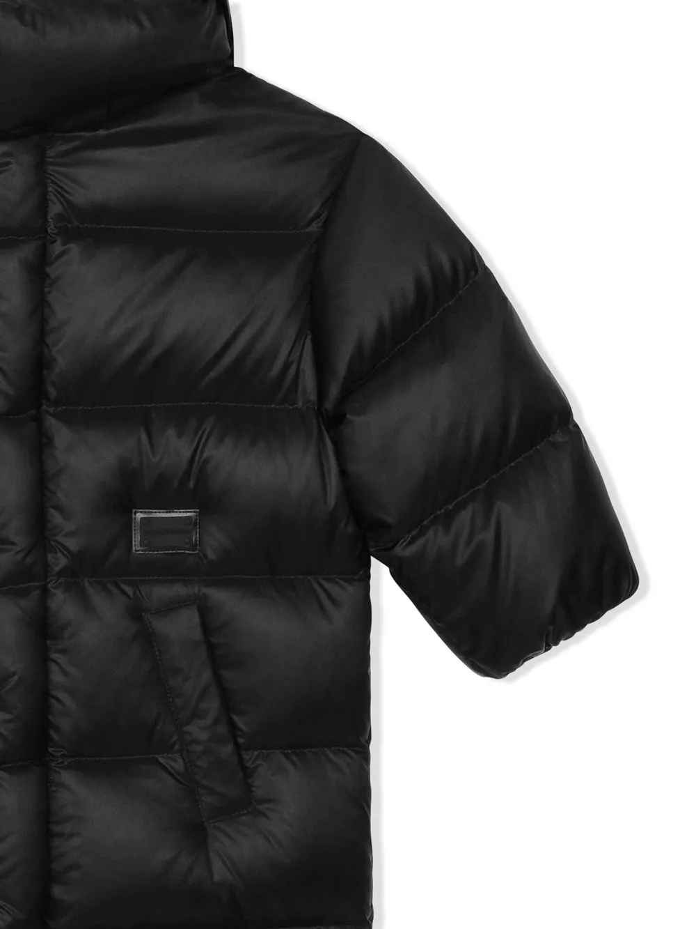 Пуховик с капюшоном и логотипом Dolce & Gabbana Kids, черный