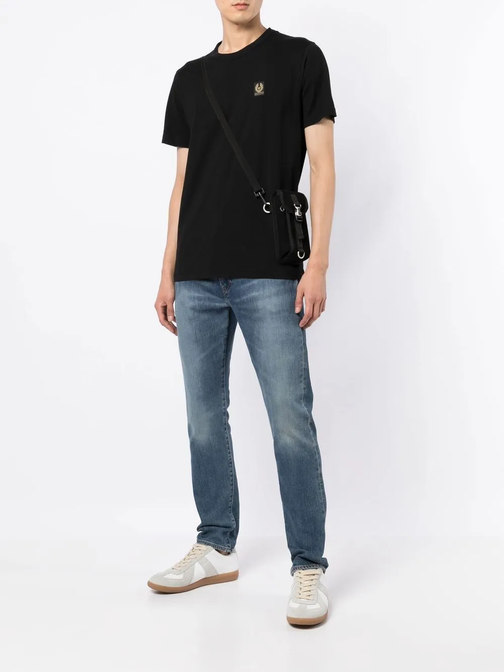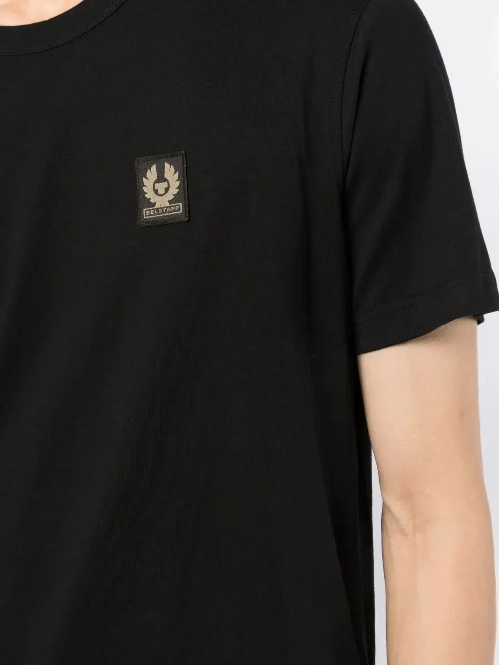 Черный, хлопок, принт с логотипом на груди, короткие рукава, круглый вырез и прямой подол.
