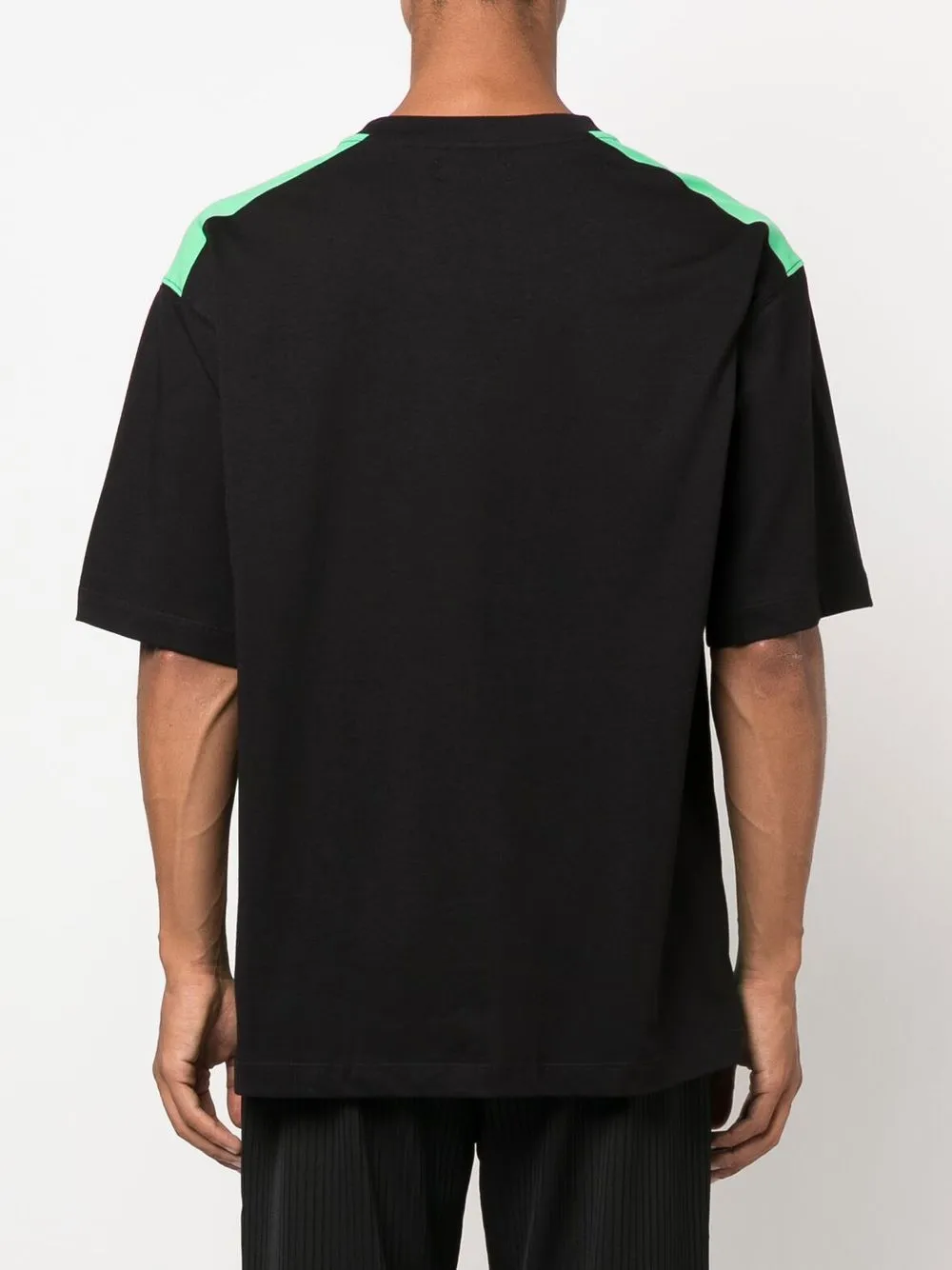 Черный/зеленый, хлопок, дизайн колор-блок, принт с логотипом на груди, круглый вырез и короткие рукава.