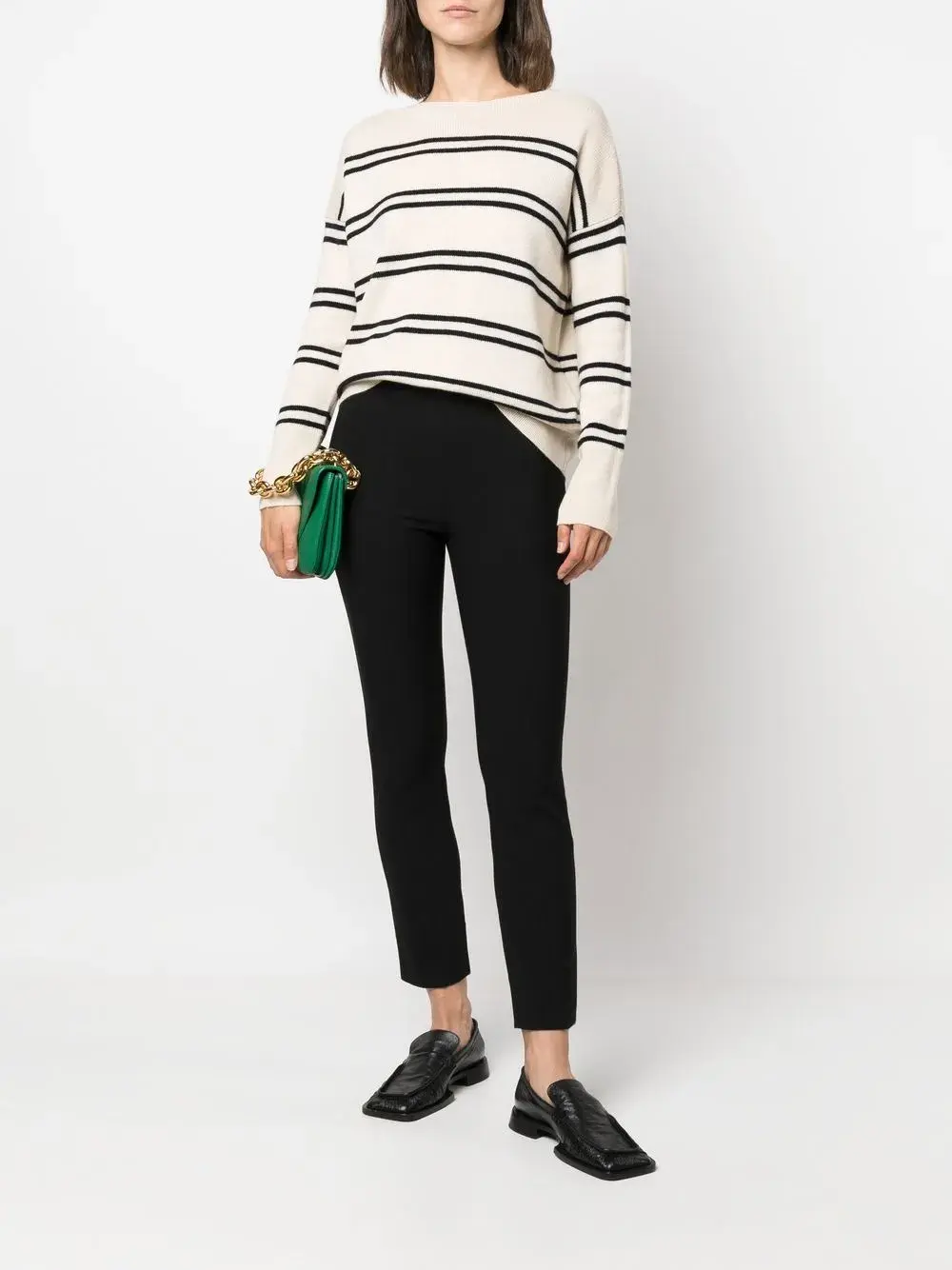 Черный, узкий крой, модель без застежки и эластичный пояс.