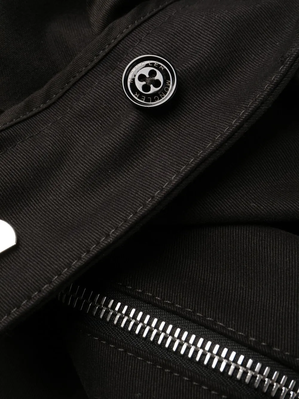Нашивка с логотипом сзади, потайная застежка спереди, два вшитых кармана по бокам и два кармана с клапанами сзади.