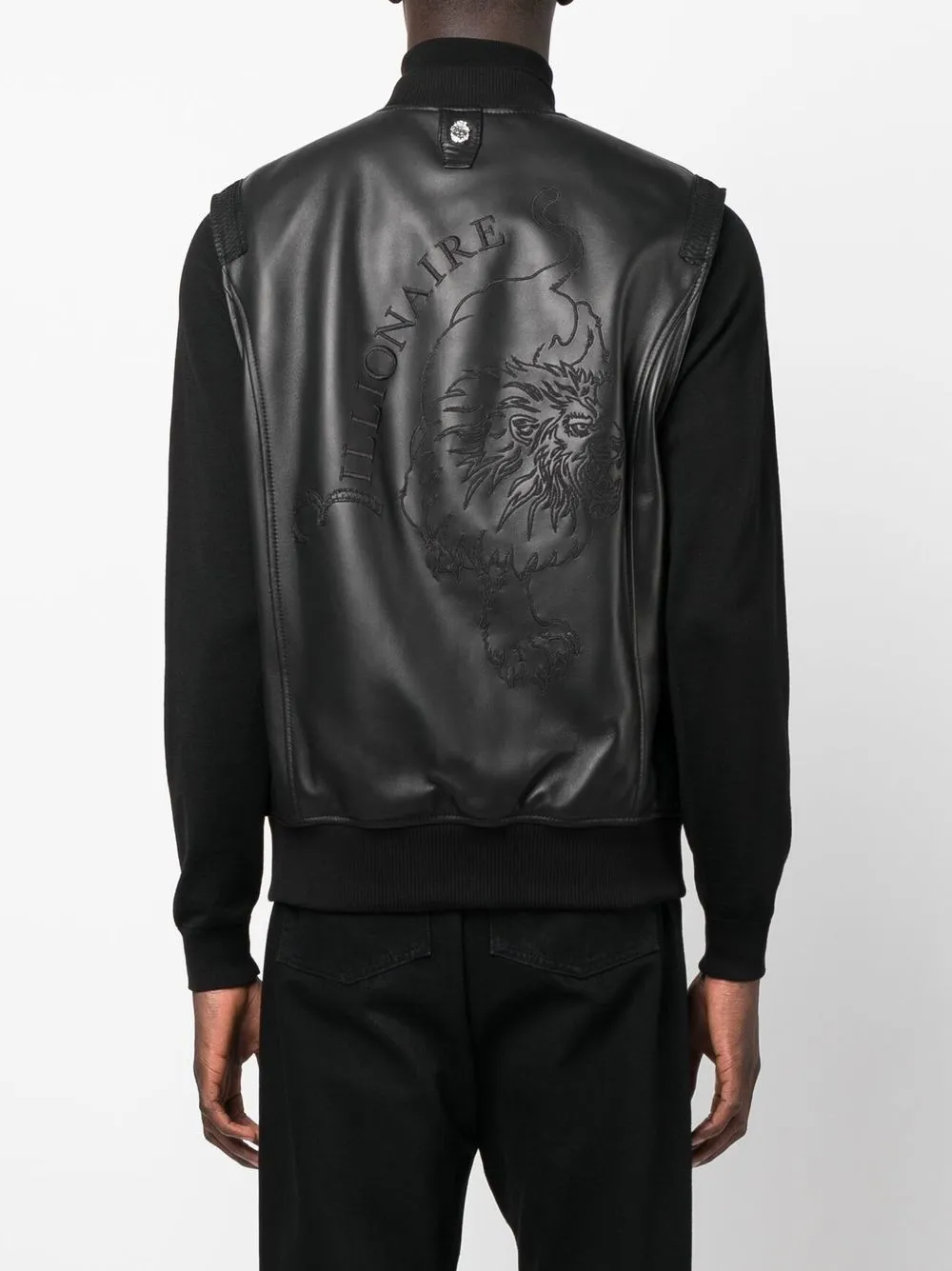 Кожаный жилет с вышивкой Billionaire, черный 160 084₽