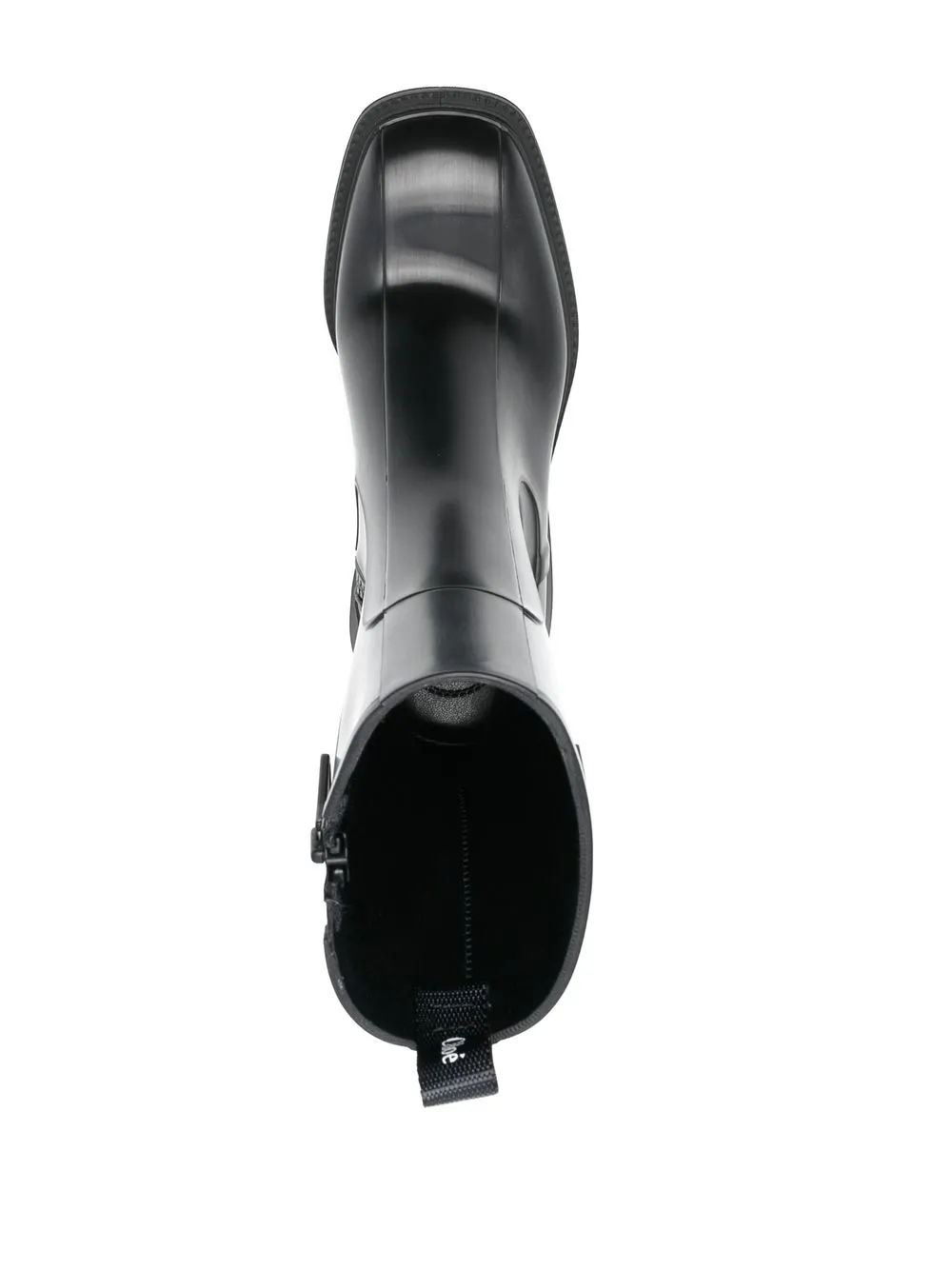 Черный, телячья кожа, высота по щиколотку, закругленный носок и плоская подошва.