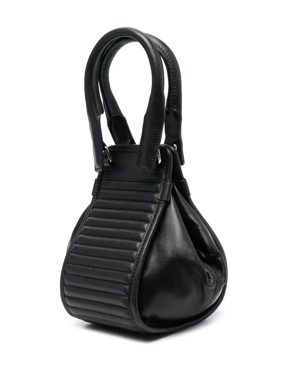 Две закругленные верхние ручки, откидной верх с застежкой на кнопки и застежка на молнии сверху.