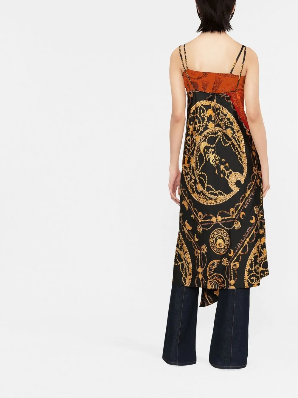 Шелковое платье-комбинация с графичным принтом Marine Serre, черный