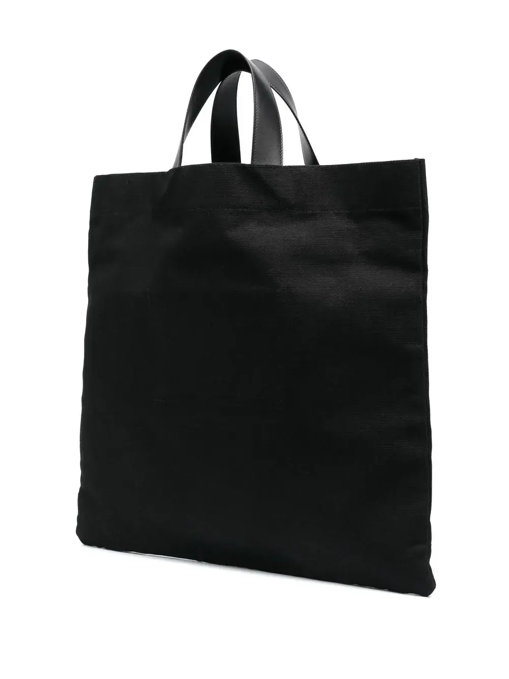 Черный/белый, телячья кожа, парусина, логотип спереди, две верхние ручки, дизайн с открытым верхом, основное отделение и внутренние прорезные карманы.