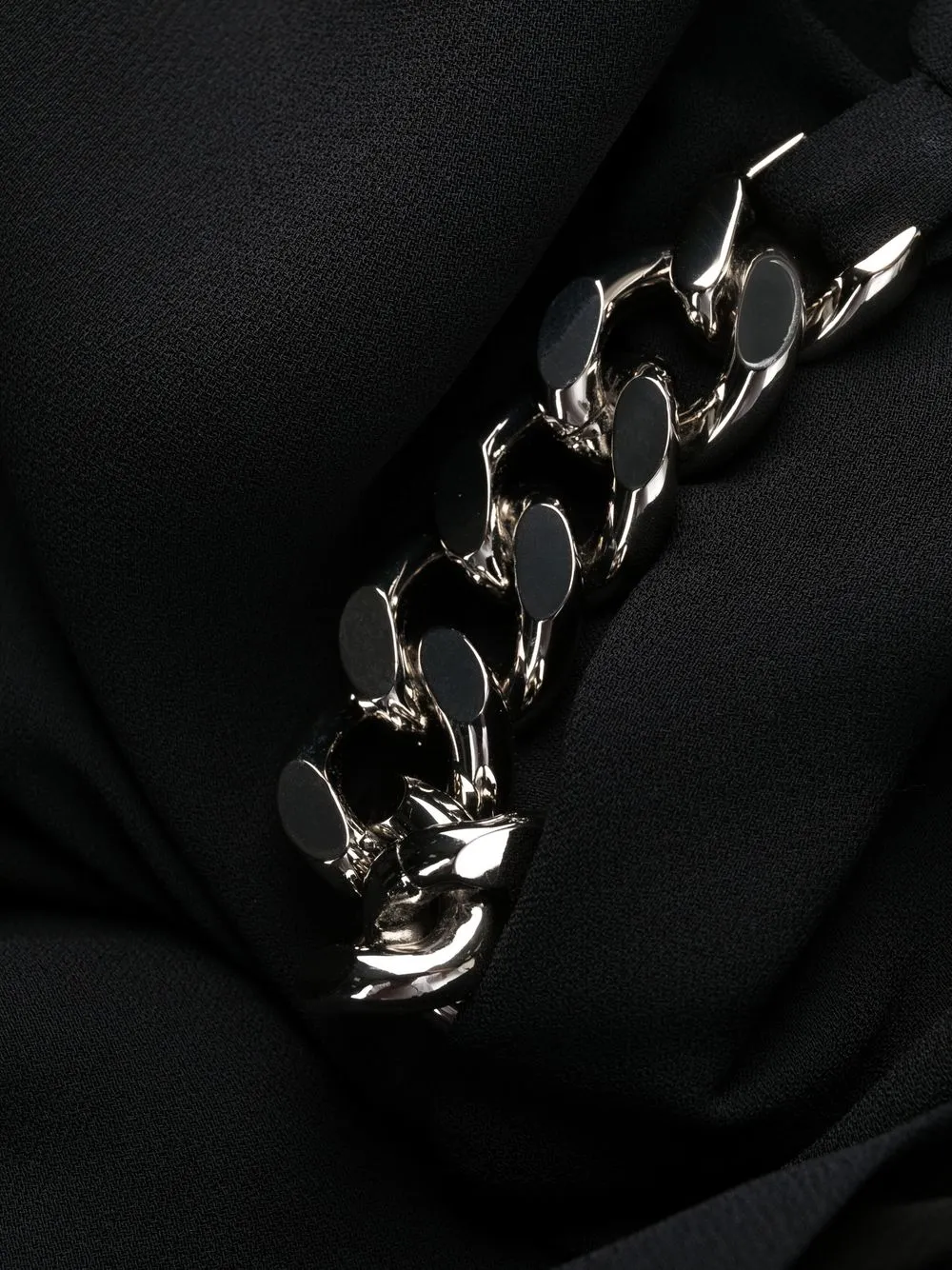 Черный, знаковая цепочная отделка, круглый вырез, короткие рукава и потайная застежка на молнии сзади. Conscious: Мы объединились с агентством Good On You, которое оценивает бренды по степени их влияния на животных, людей и планету в целом.