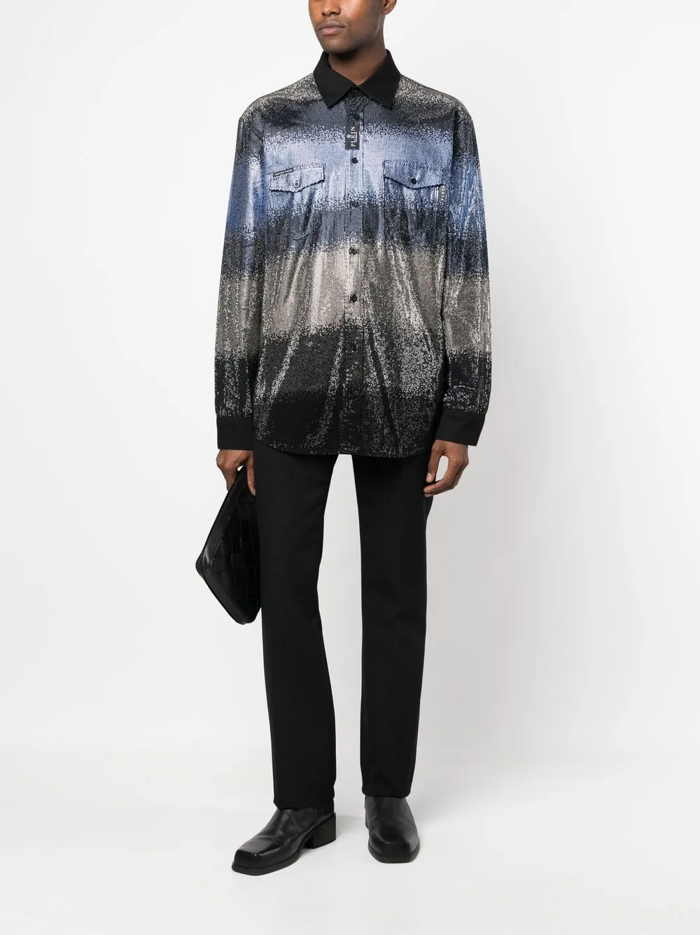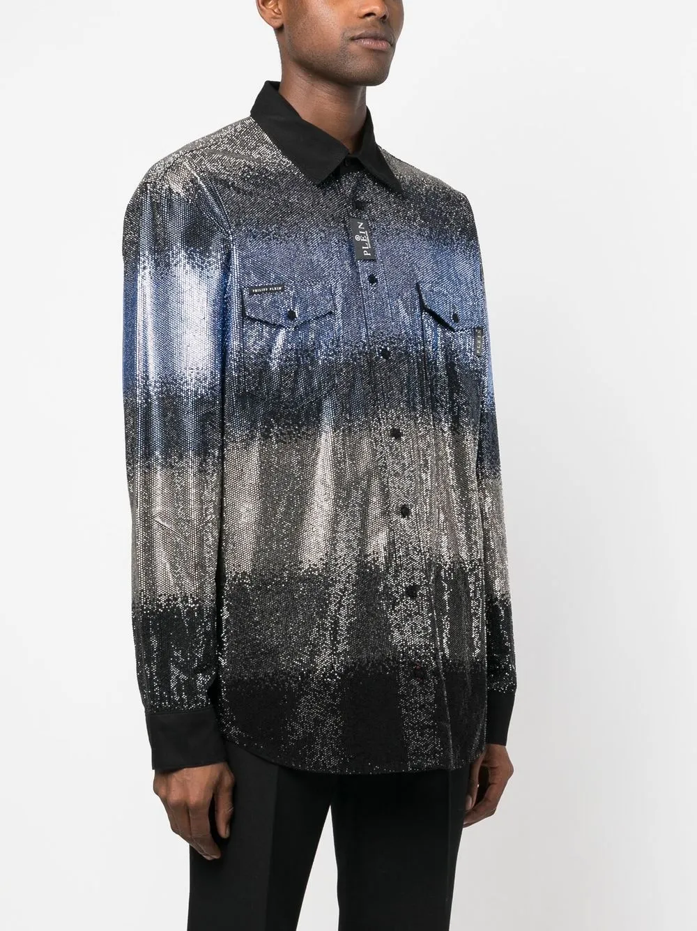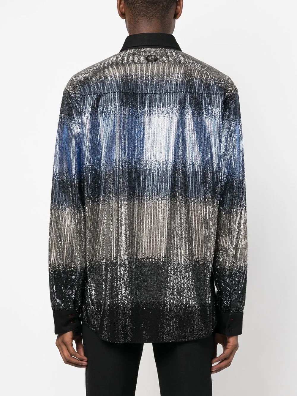 Полосатая рубашка с пайетками Philipp Plein, черный