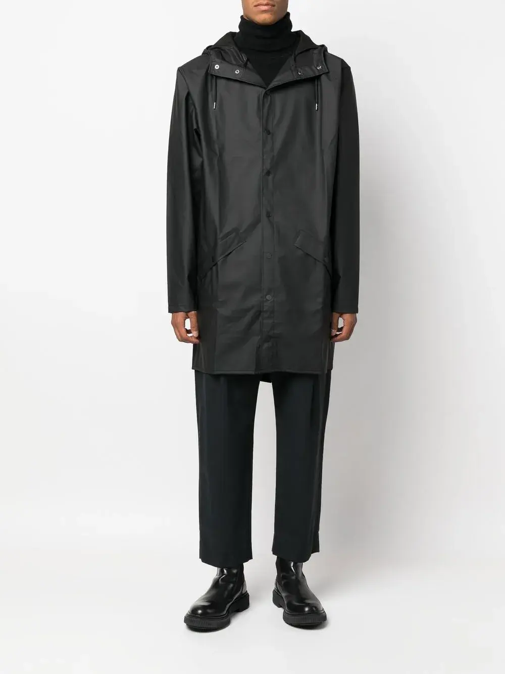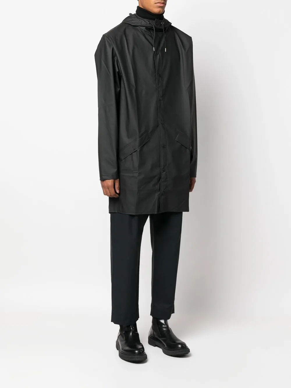 Плащ с капюшоном и кулиской Rains, черный
