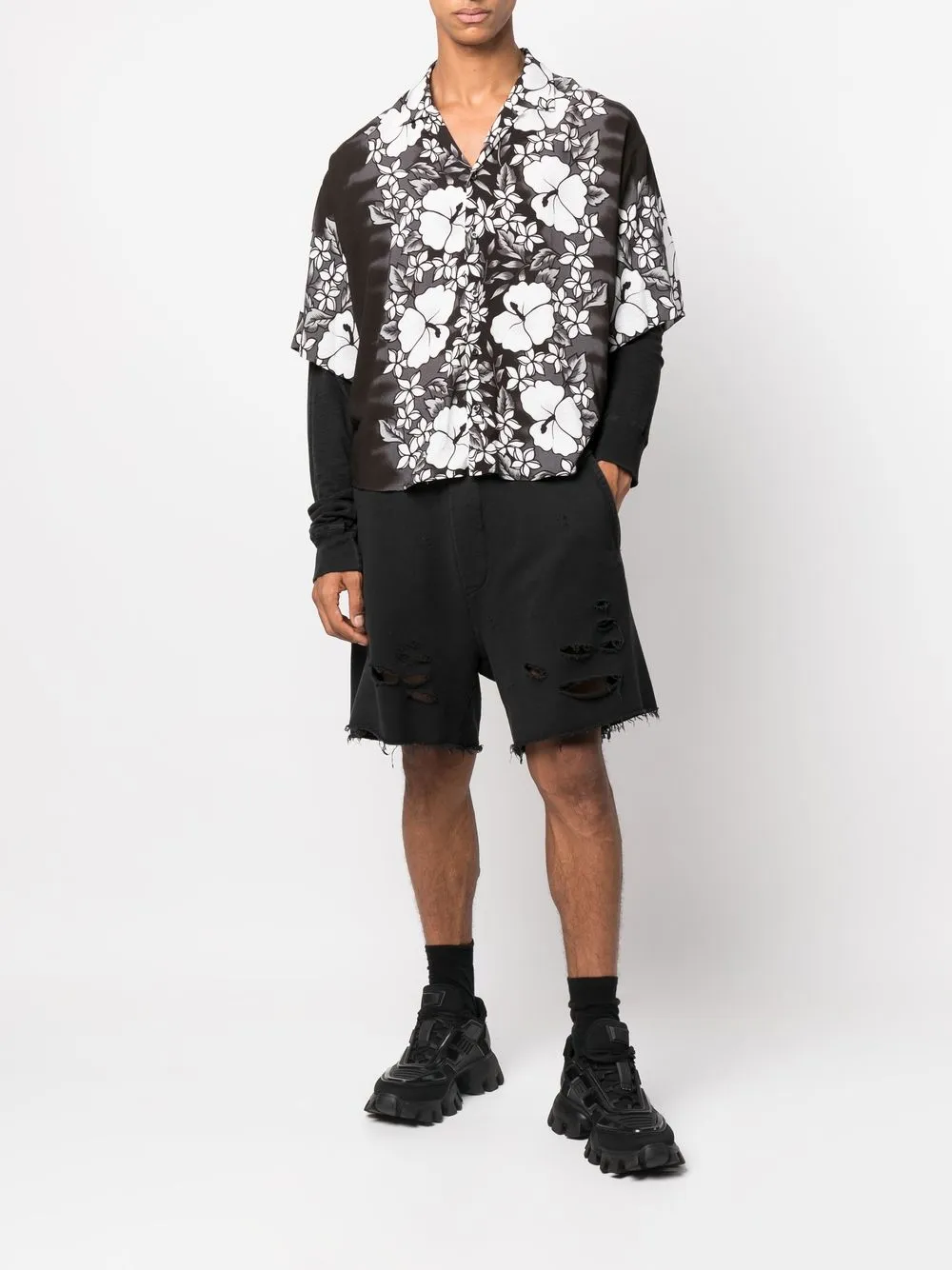 Многослойная рубашка с цветочным принтом DSQUARED2, черный
