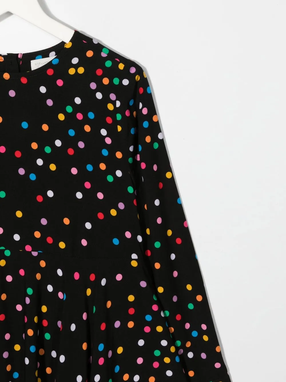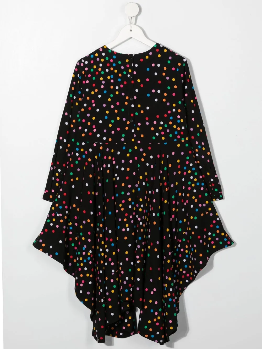 Черный/разноцветный, драпировка, принт в горох, асимметричный подол, длинные рукава, застежка на пуговицы сзади и длина миди. Ответственный выбор: Мы объединились с агентством Good On You, которое оценивает бренды по степени их влияния на животных, людей и планету в целом. Этот бренд использует этичные по отношению к животным практики, поэтому получил хорошую оценку.