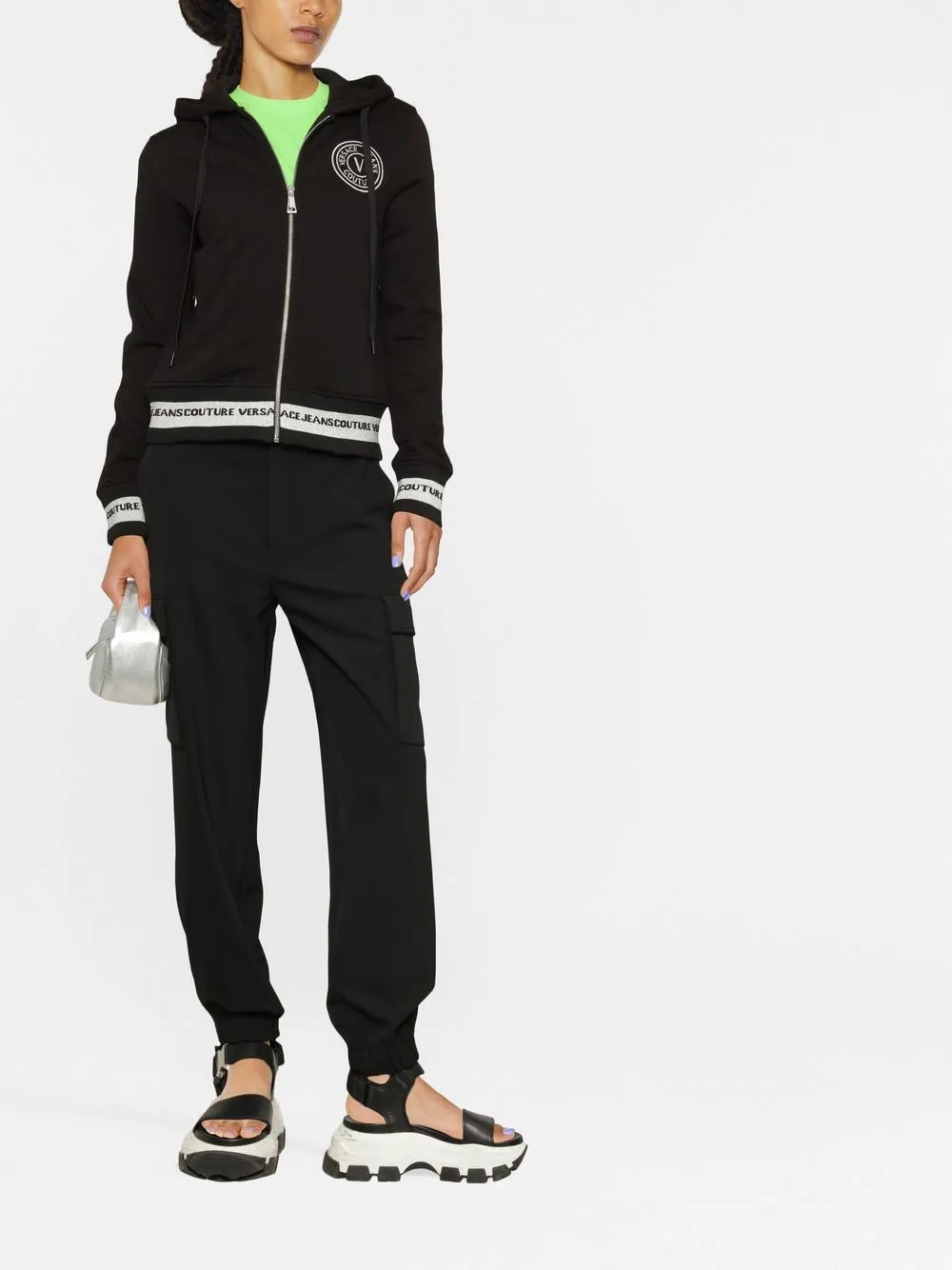 Худи на молнии с вышитым логотипом Versace Jeans Couture, черный