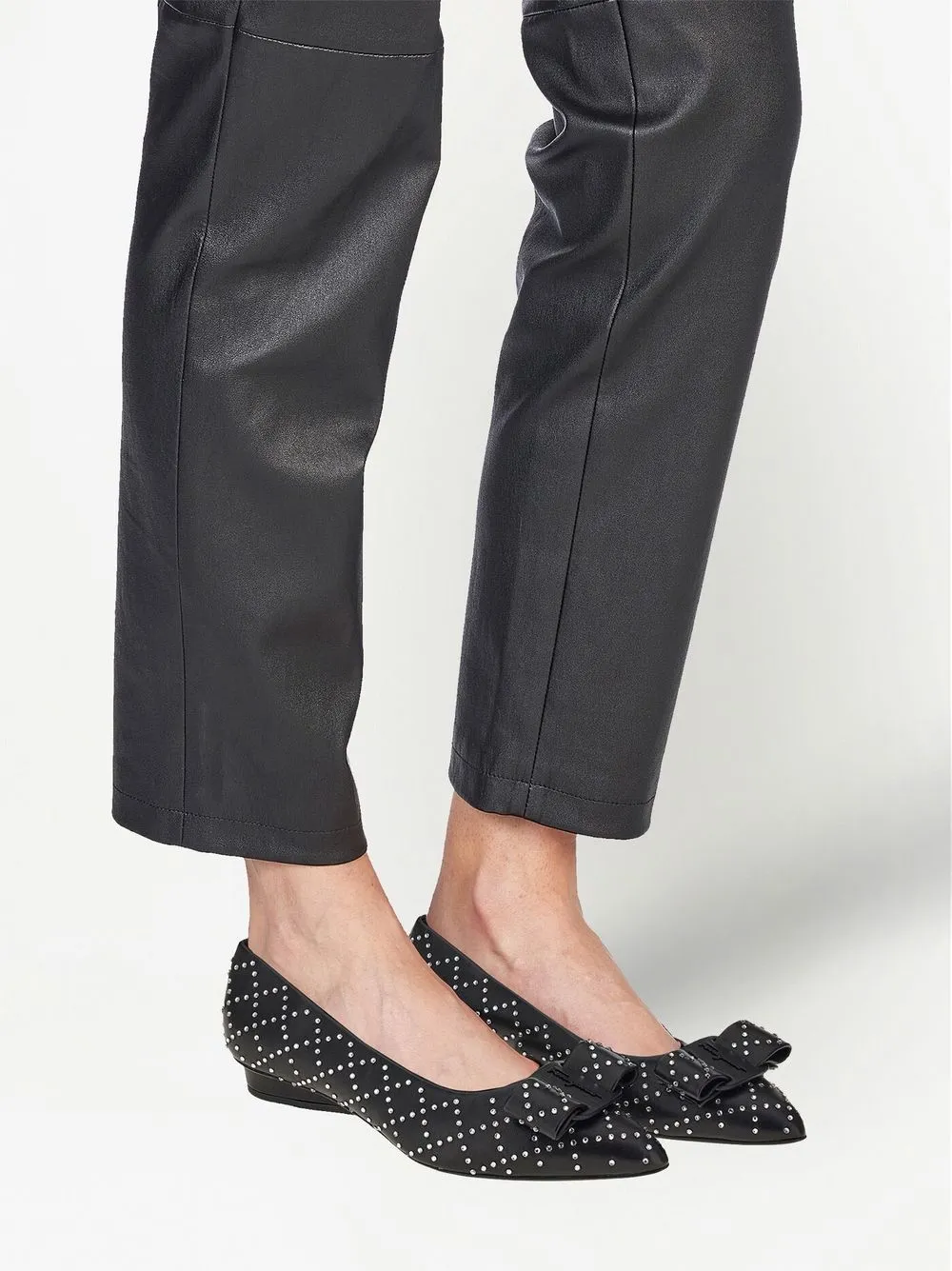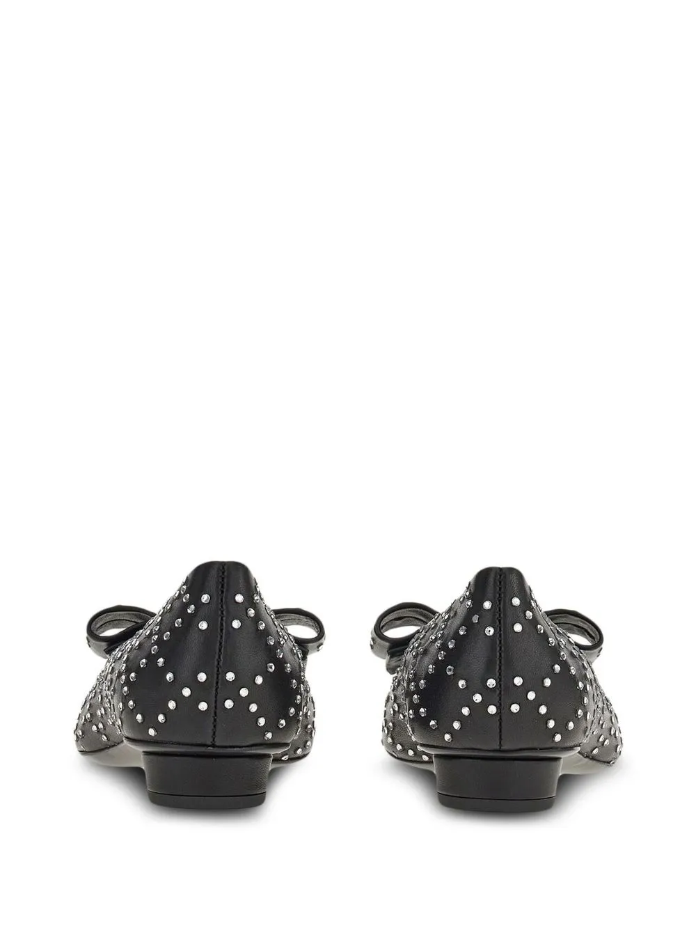 Черный, телячья кожа, бант, украшения из горного хрусталя, заостренный носок и модель без застежки.