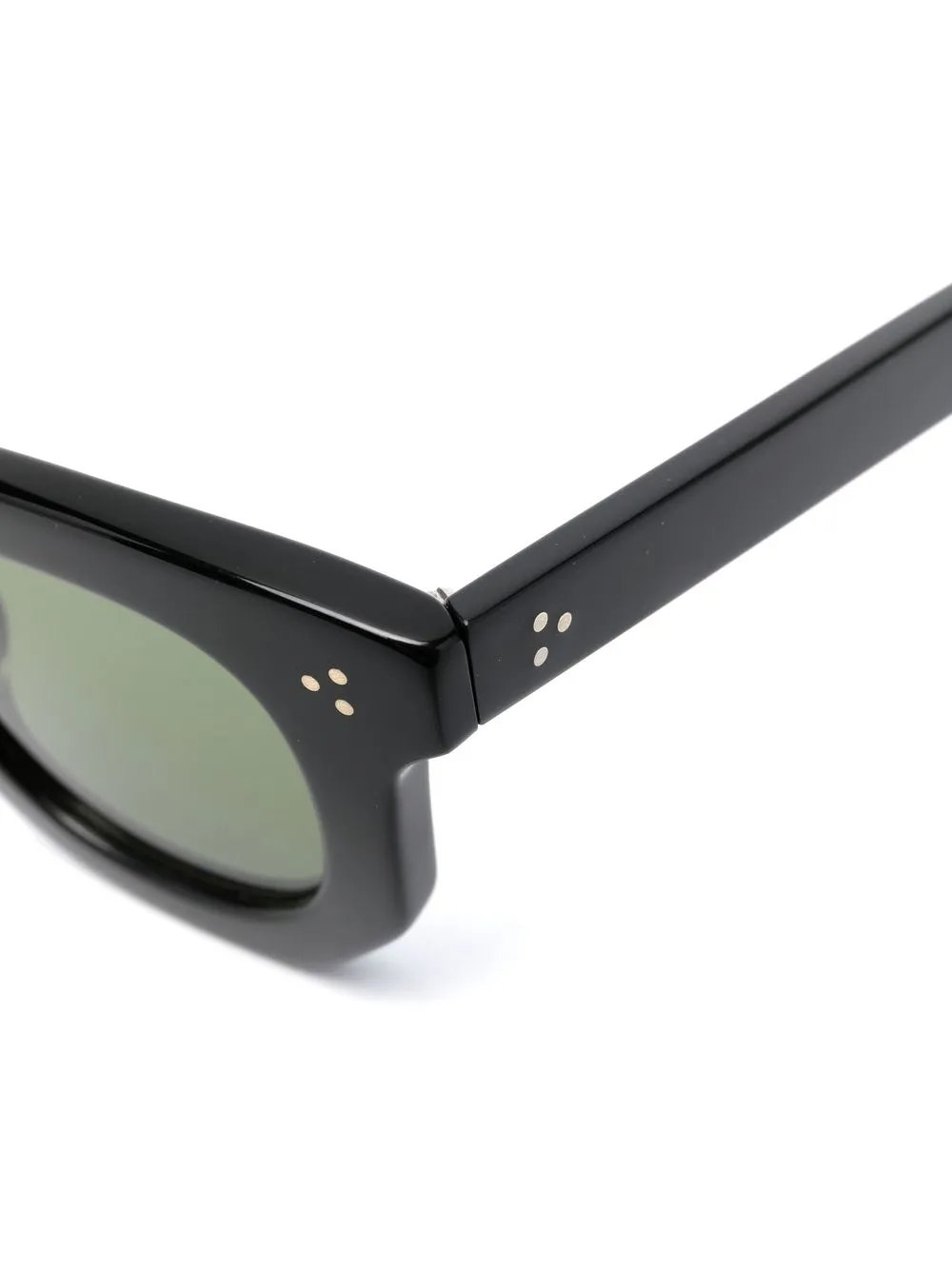 Черный, ацетат, затемненные линзы зеленого цвета, прямые дужки и дужки с закругленными концами. В комплект входит защитный чехол для очков. Обратите внимание, что на FARFETCH продаются оправы с линзами без диоптрий.